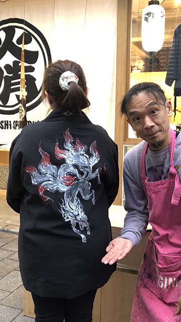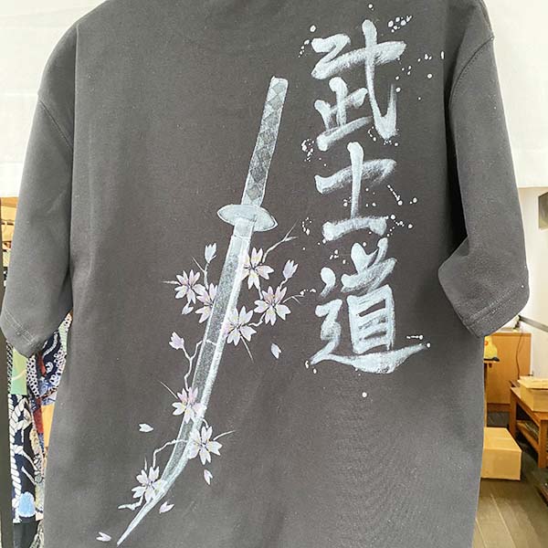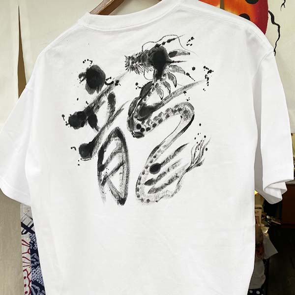 山城さんの着心地抜群のちぢみ織生地にも手描きのカスタムオーダーしていただけます。