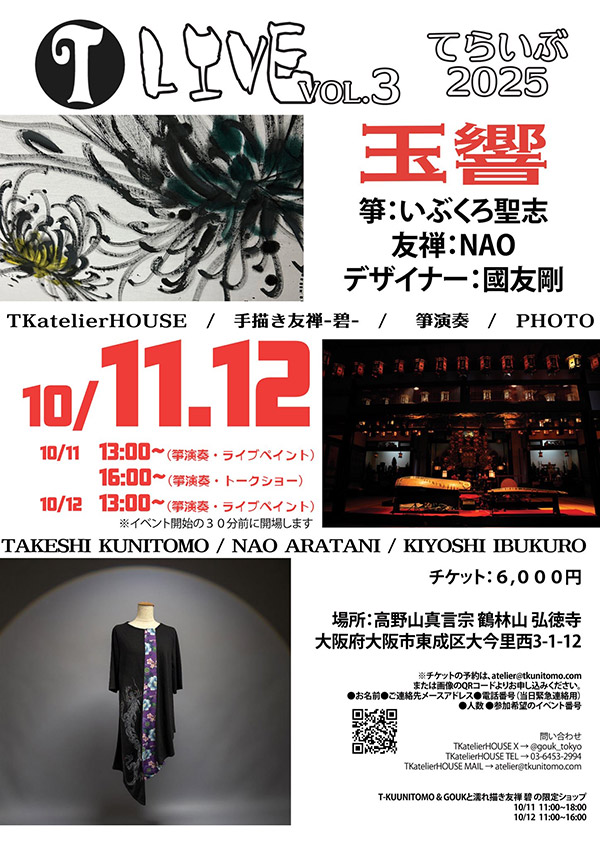 荘厳な雰囲気の中でいぶくろ聖志氏の生の琴演奏を是非お楽しみください。