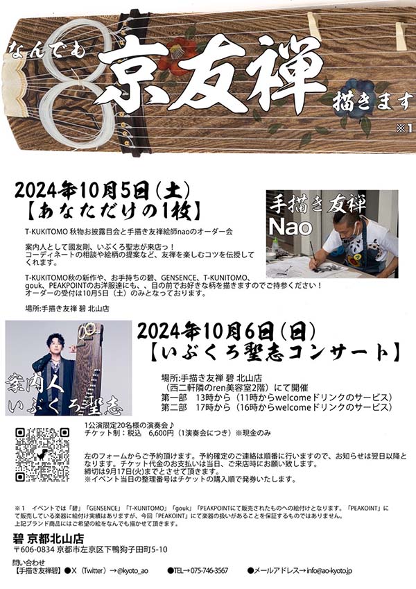 会場では、T-KUUNITOMO & goukと、手描き友禅 碧 の限定ショップもオープンします!!