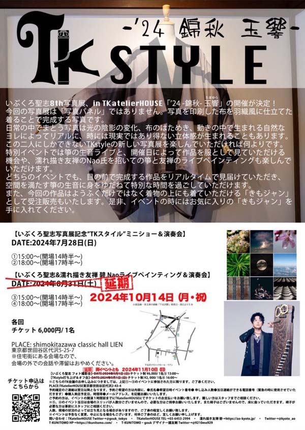 ※イベント参加は、TKアトリエハウスのTwitter DMにて8/30 昼12時より、ご予約を承ります。返信は翌日以降になります。(TKatelierHOUSE(@gouk_tokyo)さん / Twitter)