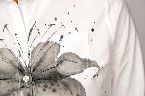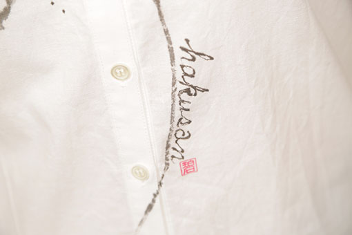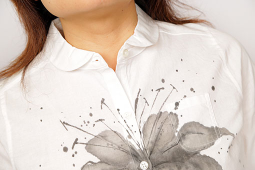 白い百合を濃淡3色で表現しました。 リリーは聖母マリアの象徴、花言葉は【純粋】 シャツを着ると純粋な心になれる様に…と願いを込めて胸に柄を入れました。
