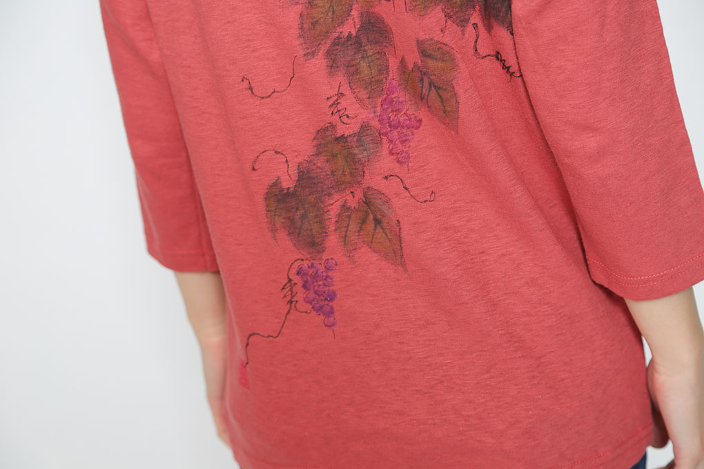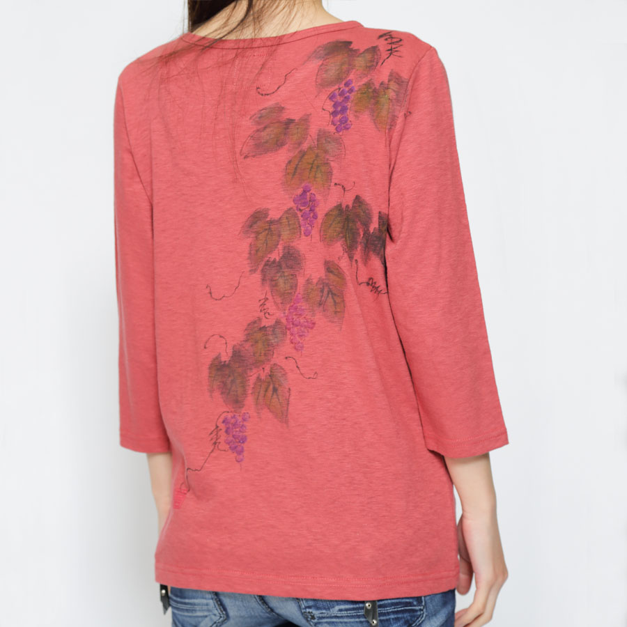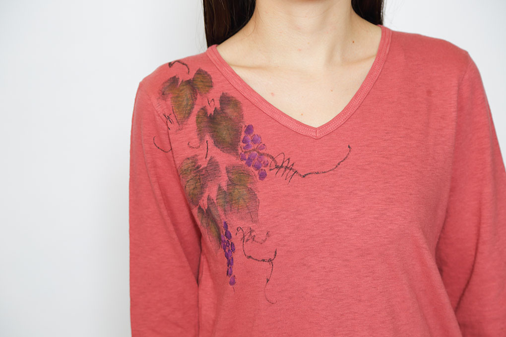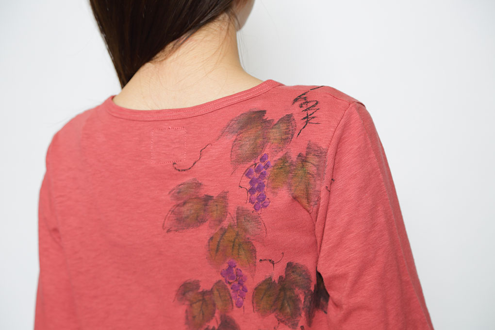 他の物に巻き付き沢山の実を付けるところから、他の者を取り込み一緒に実を結ぶ(成功)を意味する。縁起物の葡萄VネックTシャツです。