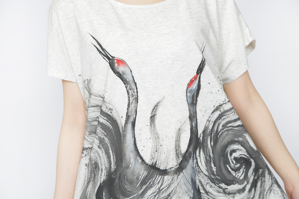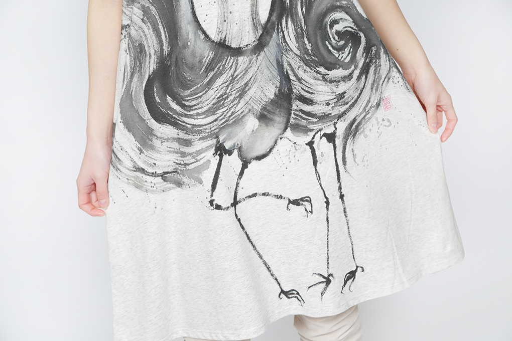 鶴は吉祥の鳥、長寿の象徴とされています。 そして、夫婦仲が大変よくて、つがいになったら一生を連れ添うといわれている縁起物です。 人は一人では生きては行けません。 夫婦、親子、親友、仕事仲間が円満に続くようにという願いをこめて描きました。