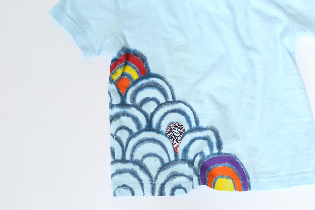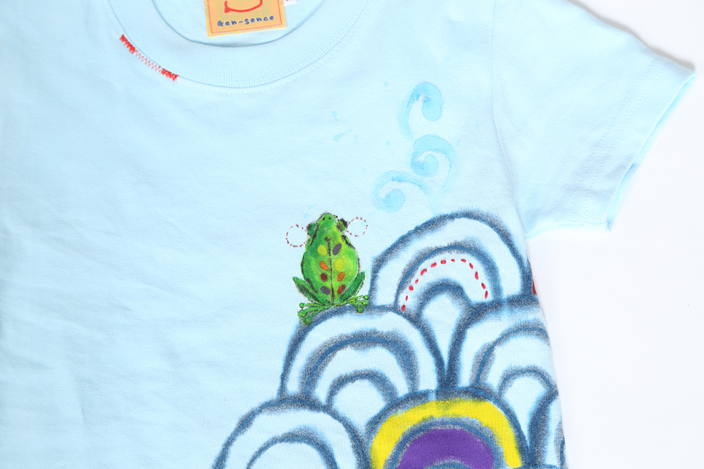 古くから伝わるこの波の文様は広い海の恩恵を意味する縁起物の柄。 永遠に続く幸せを願う青海波の柄に、「福が返る(蛙)」と因んで可愛い蛙も波乗りしています。浴衣生地や着物生地をリメイクしたり、赤いステッチを入れたりして遊び心を添えています。 ※一つ一つ手作りの為、リメイク生地は多少異なりますのでご了承下さい。