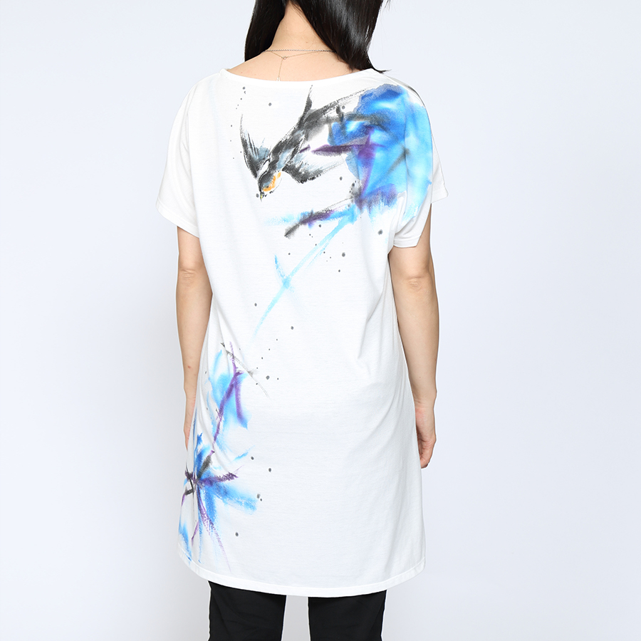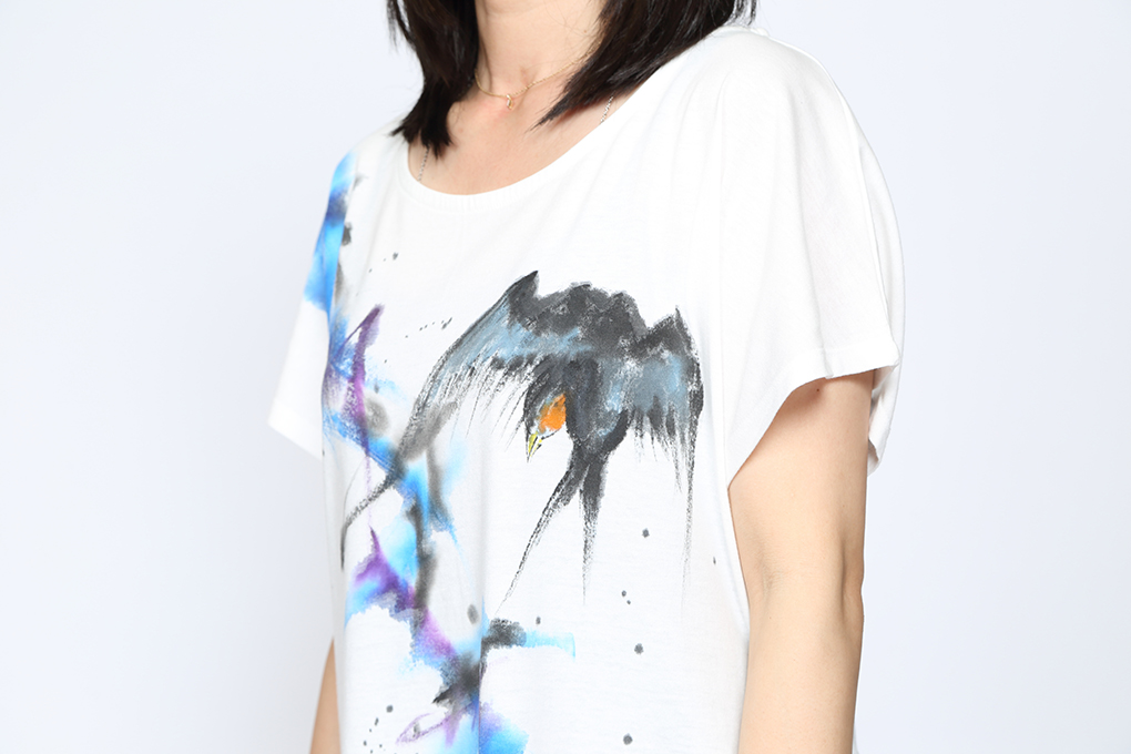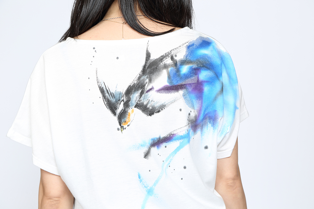 縁起物の燕。燕が巣を作る家は繁栄する。病人が出ない。などと運気の良い家だと象徴されるとか。 空色と美しい紫色が鮮やかで、燕が元気に飛び回っている事を表現しています。