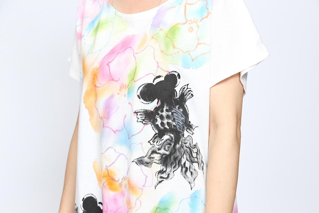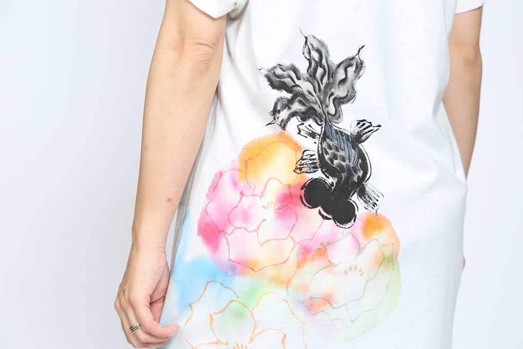 にじみ花と出目金Tシャツワンピース