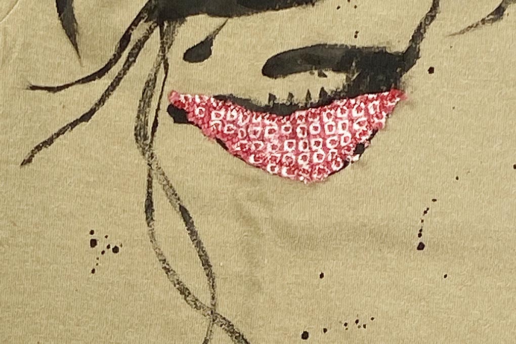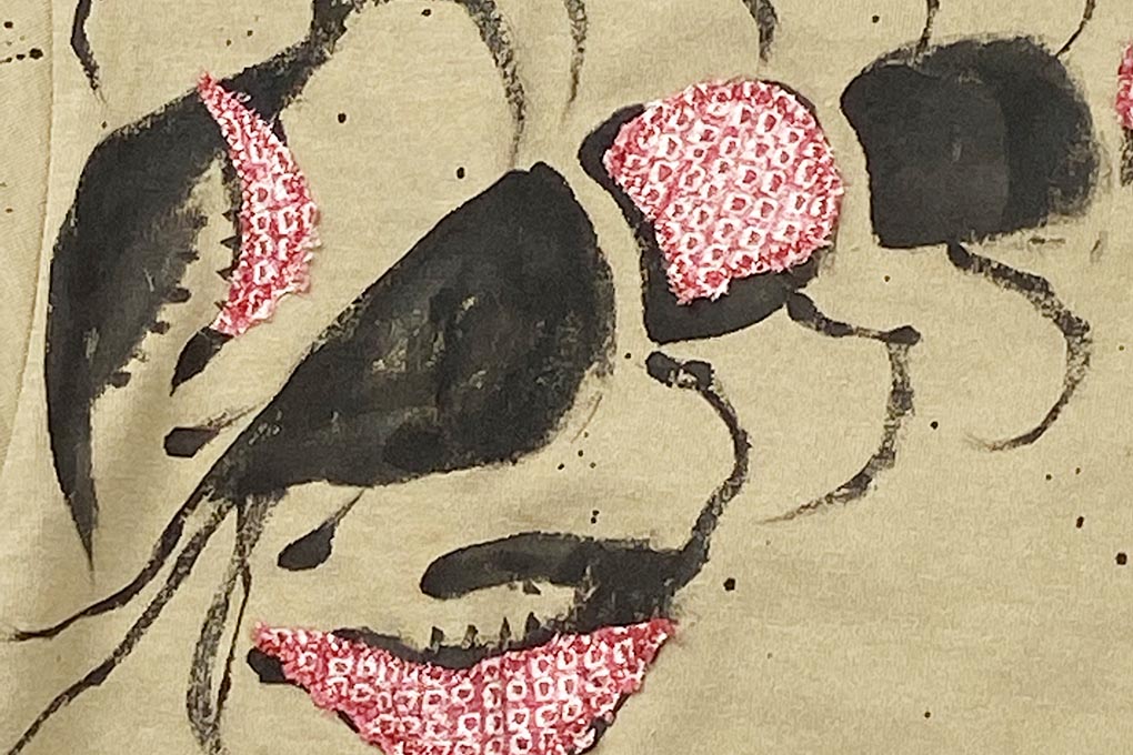 身体よりも長い手足。不思議なフォルムで手長海老を表現しました。 高度な職人技である京鹿の子絞り。 その生地を体に付けて面白いリメイクをしました。 独特の立体感や色合い、そして、繊細なにじみと作家独特の大胆な筆使いをお楽しみ下さい。