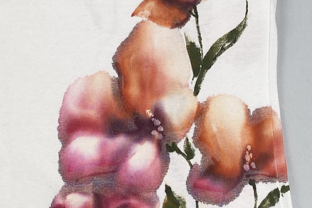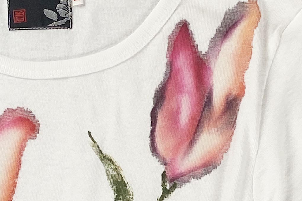 赤や渋い赤や、暖色系の色を重ね合わせながら滲ませて、この花を描いてみたら、まるで紅茶の様な色目だなぁと、ストレートアイスティーを思い浮かべました。 紅茶の国の架空の花。そんな神秘的なイメージから命名しました。