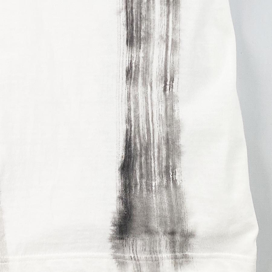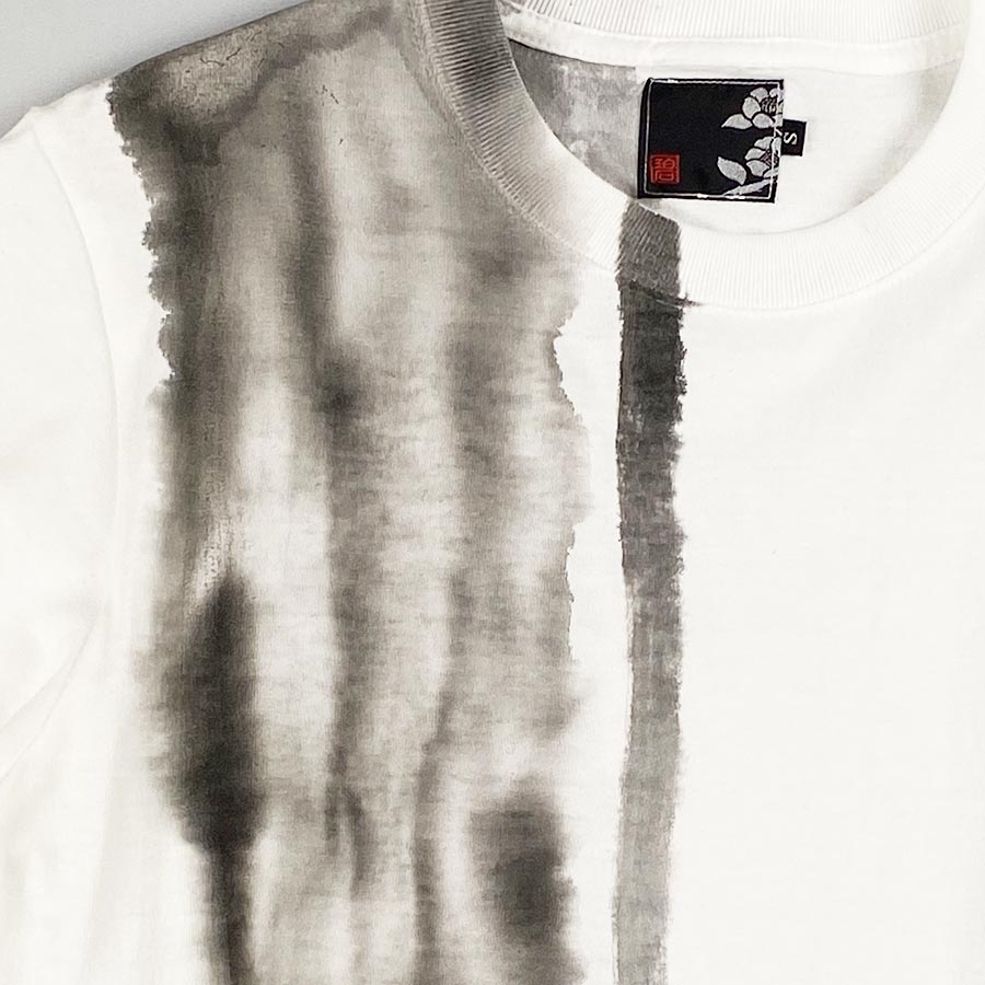 墨濃淡がシックで粋な一枚です。 細い筆、太い筆、小さな刷毛や大きな刷毛など、様々な道具を使って色々な線を滲ませたり不揃いの毛先に刷毛を仕上げて味のある線を仕上げたり、シンプルですが面白い一枚となりました。