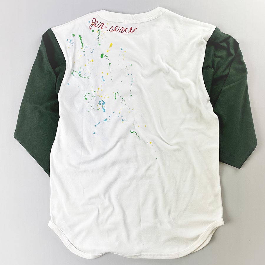 そんなタツノオトシゴをビンテージ感のあるベースボールTシャツに描きました。裾はラウンドしたバインダー仕上げ。