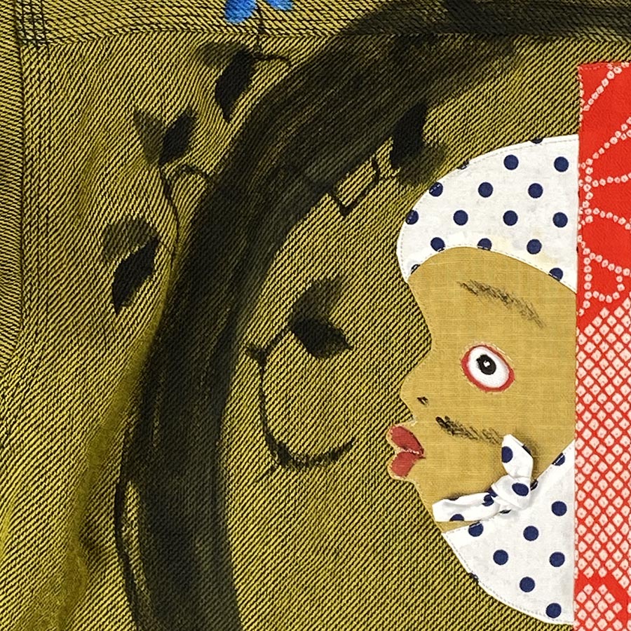 そんな縁起の良いふたりの顔を布地で立体にリメイクし、円相の中に納めた、何とも遊び心のあるシャツ。描いているシャツは厚手でハリのある生地感で耐久性にも優れているため、長く着用することができ、経年変化も楽しめます。ビンテージシャツによくみられる空環(からかん)があり垂れた糸がポイント。