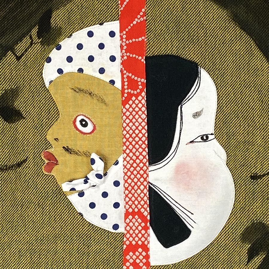 ふくよかな女性のお面「おかめ」と、口をすぼめている男性のお面「ひょっとこ」は、神様への奉納する為の舞で用いられる縁起物。おかめは「厄払い」「魔除け」から「福を招く神様」、ひょっとこは口を尖らせて竹筒で火を吹く事から「火を守る神様」と言う事で2人合わせて「家庭円満の神様」とされています。