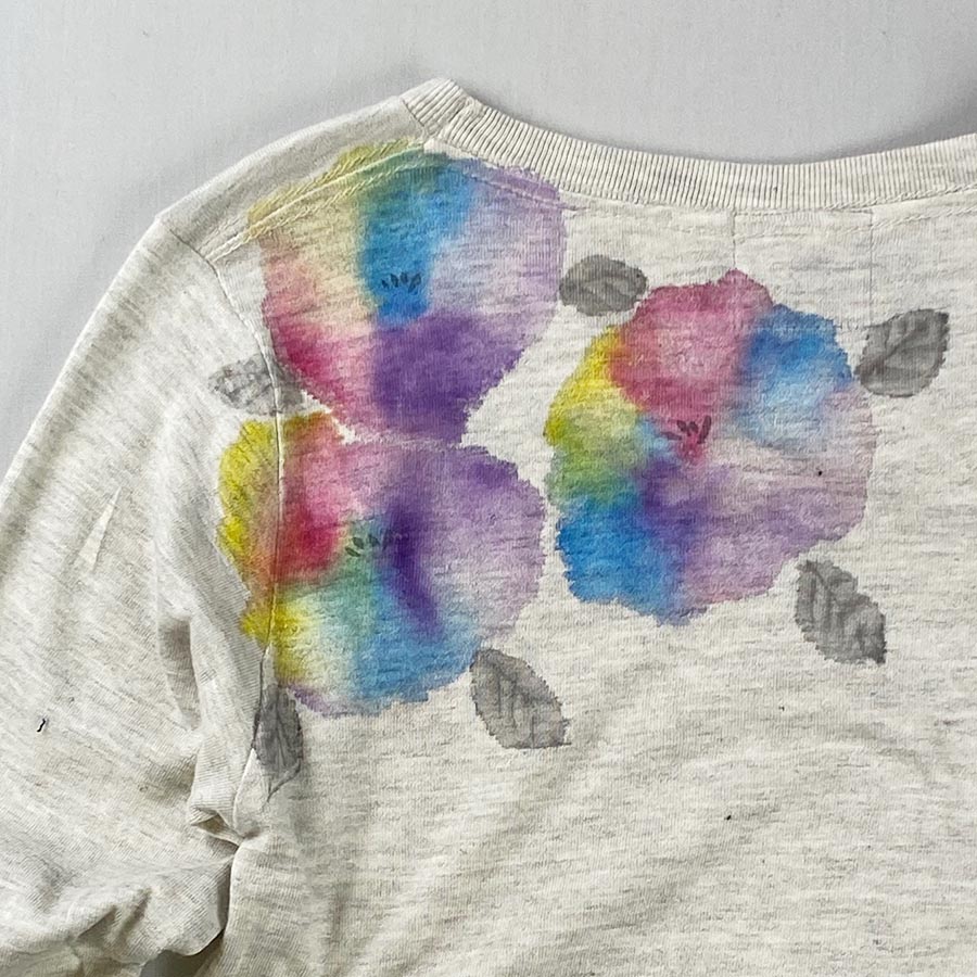 その素材に美しい滲んだ淡いお花を対角線上に咲かせました。