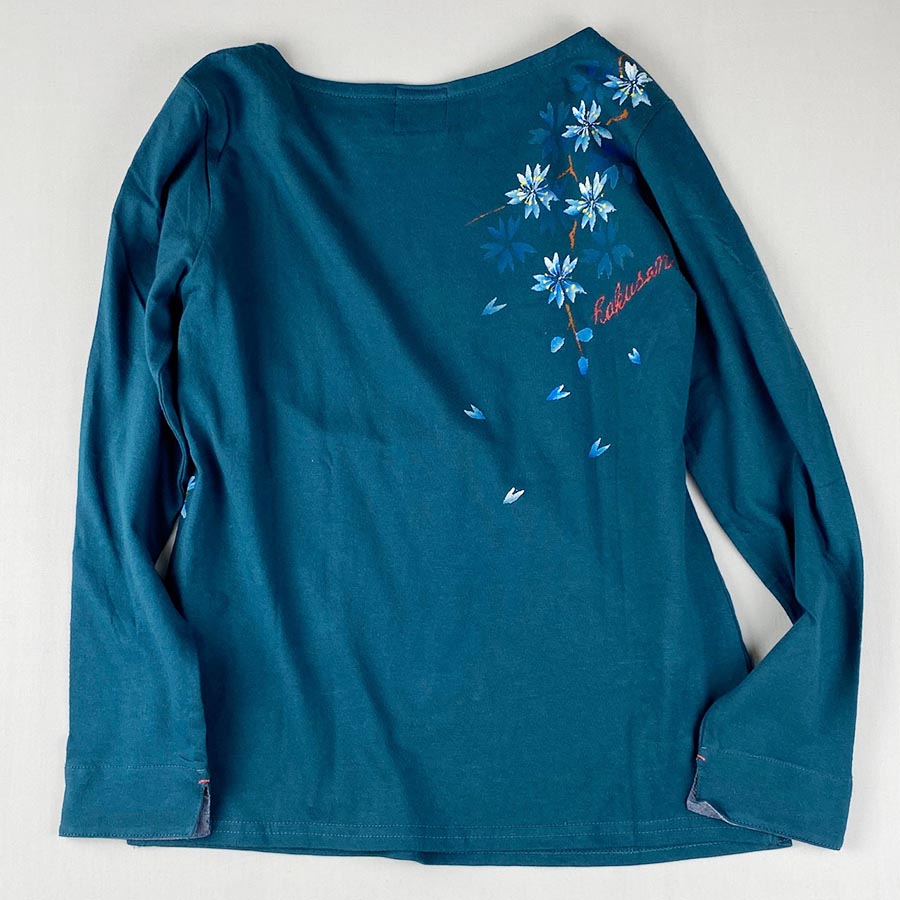 その長袖Tシャツに春の風物詩として愛され続ける和の心をあらわす日本の花、桜を描きました。