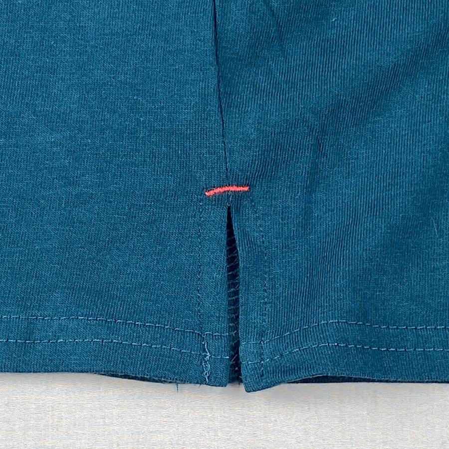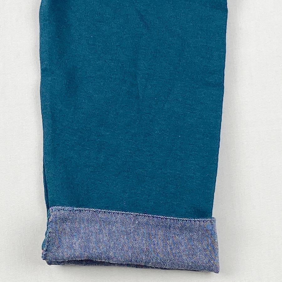袖口は折り返すとシャンブレー素材が可愛らしく、ロールアップしてもそのまま着ても素敵な一枚。裾にはスリットが入っていて、赤い糸がワンポイント。