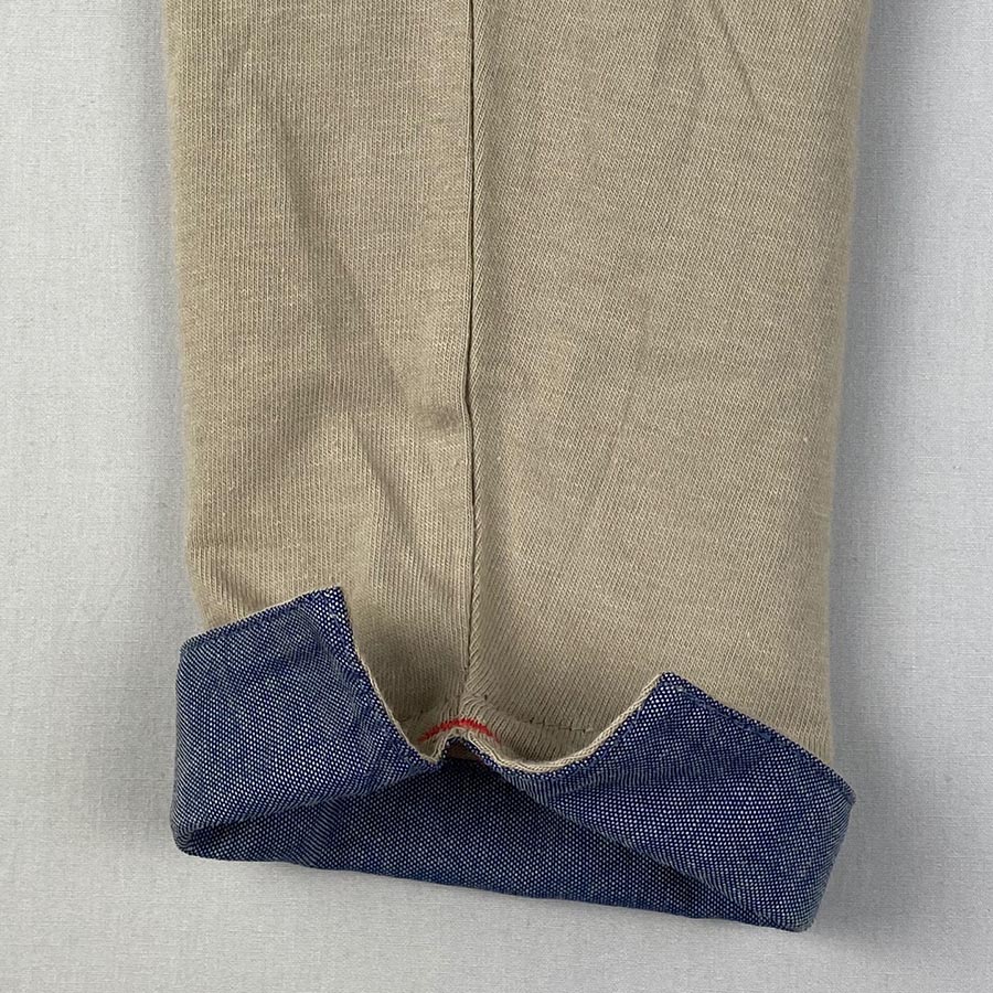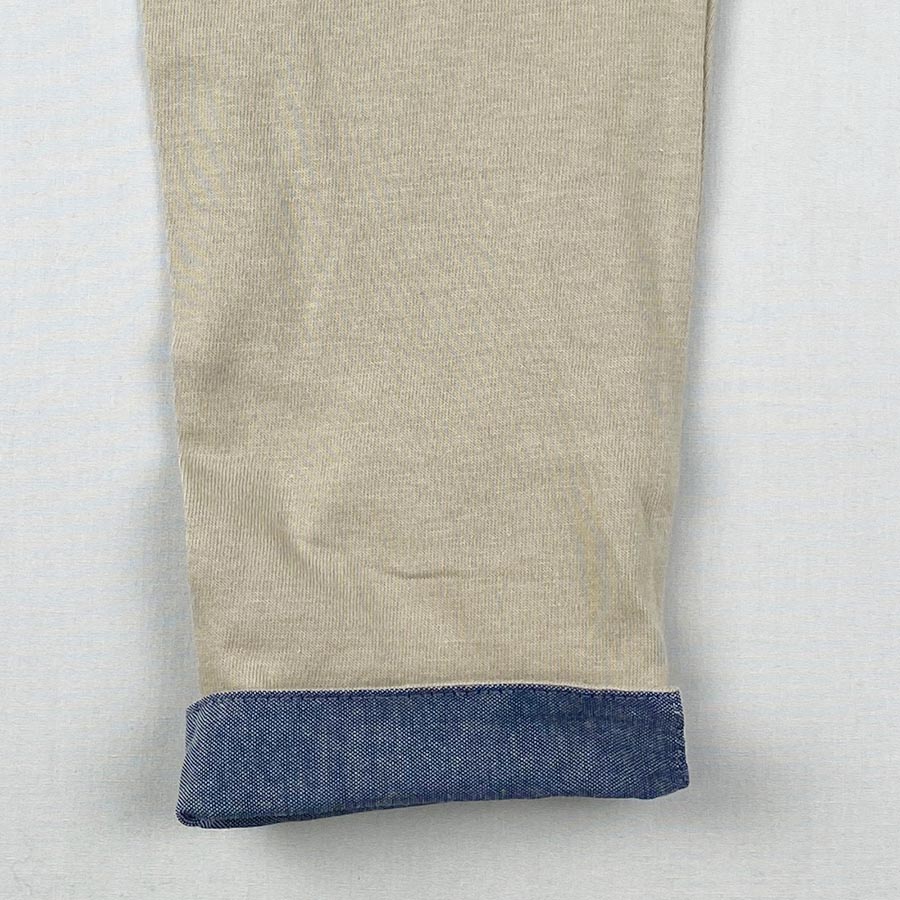 袖口は折り返すとシャンブレー素材が可愛らしく、ロールアップしてもそのまま着ても素敵な一枚。裾にはスリットが入っていて、赤い糸がワンポイント。