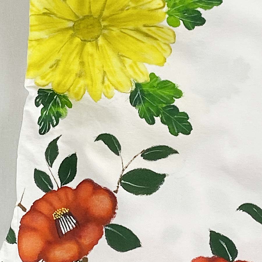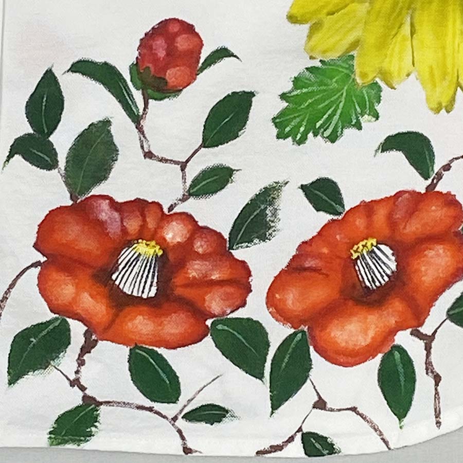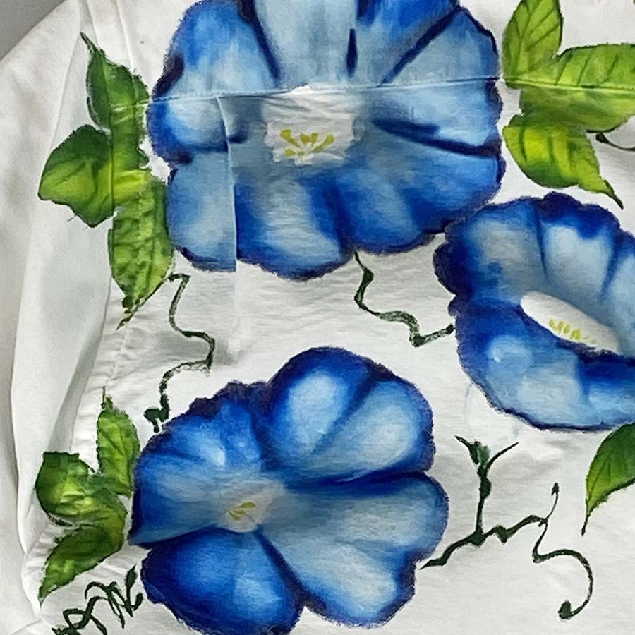 前身にも後身にも沢山の花々。前立てや脇の縫い目に花が繋がって描かれているのは手描きでした成せない技。