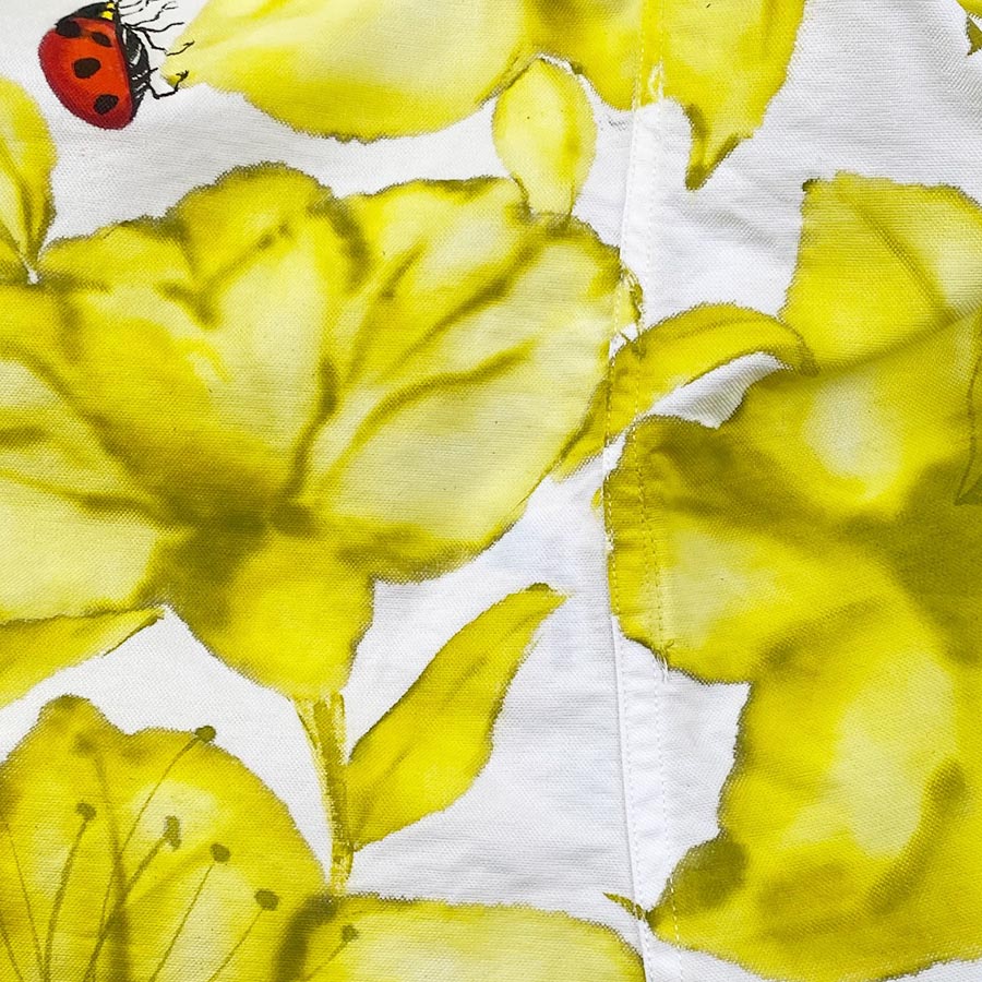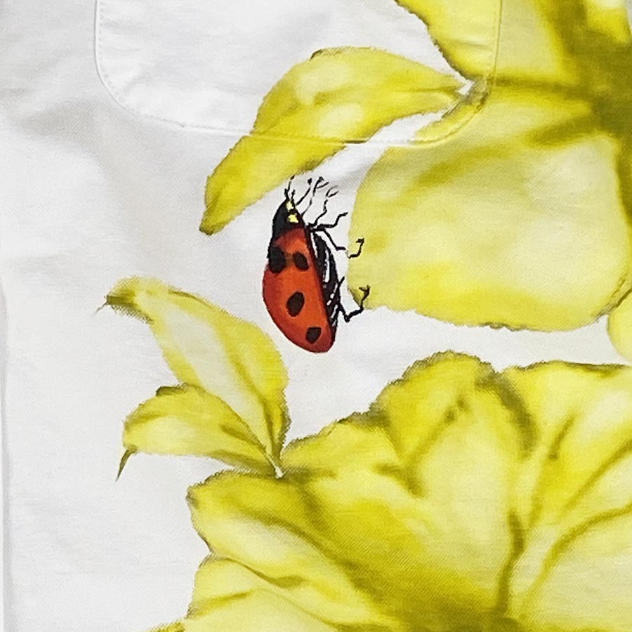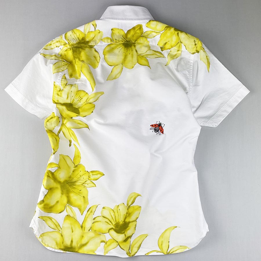 シンプルなボタンダウンのシャツに日本でも古くから人気の花木、躑躅(つつじ)の花を抽象的に描き、満開に咲かせました。