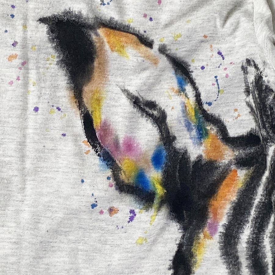 しまうまは、視覚や嗅覚も鋭いですが、聴覚も優れていて、大きな耳はほとんどの方向に向けることが出来ます。その耳も大きく可愛らしく描きました。睫毛も何て可愛いんでしょう!