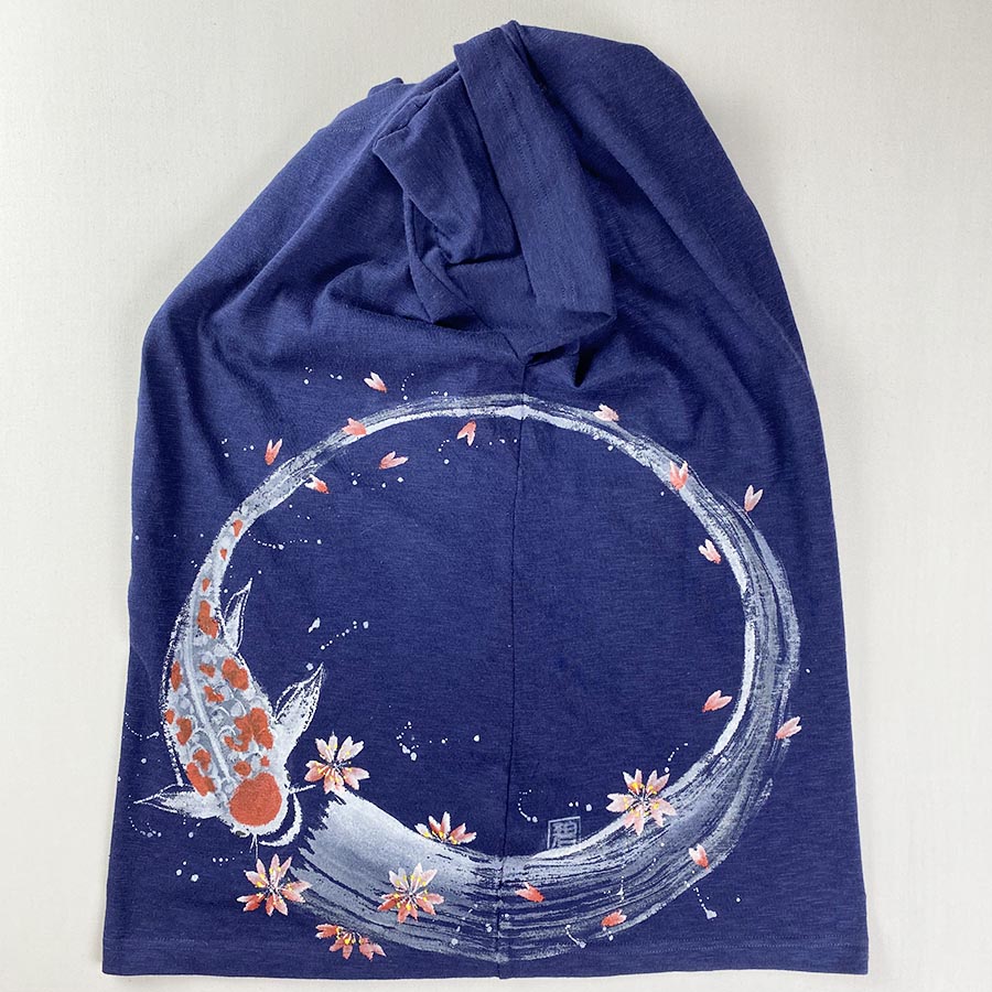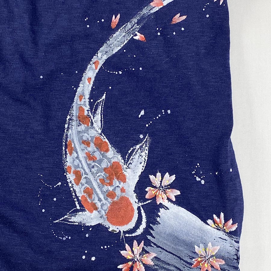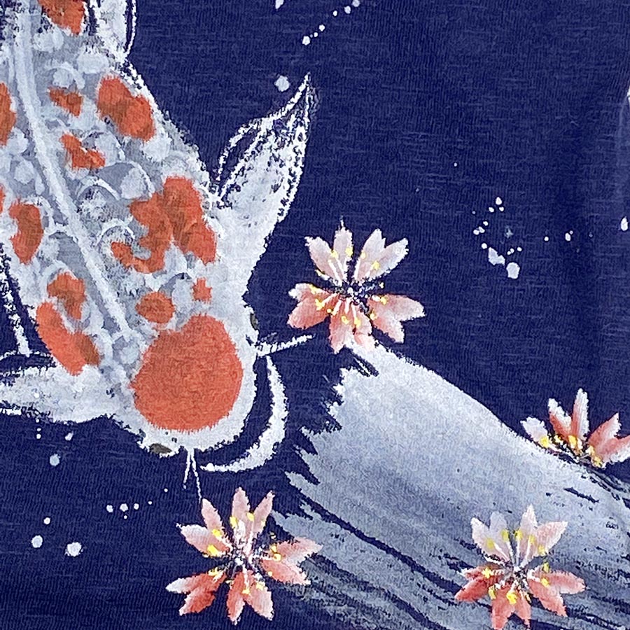優雅で高貴な錦鯉が迫力の大波から飛び出したかの様な景色を描きました。水しぶきは桜。粋な一枚です。