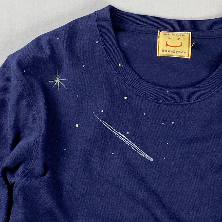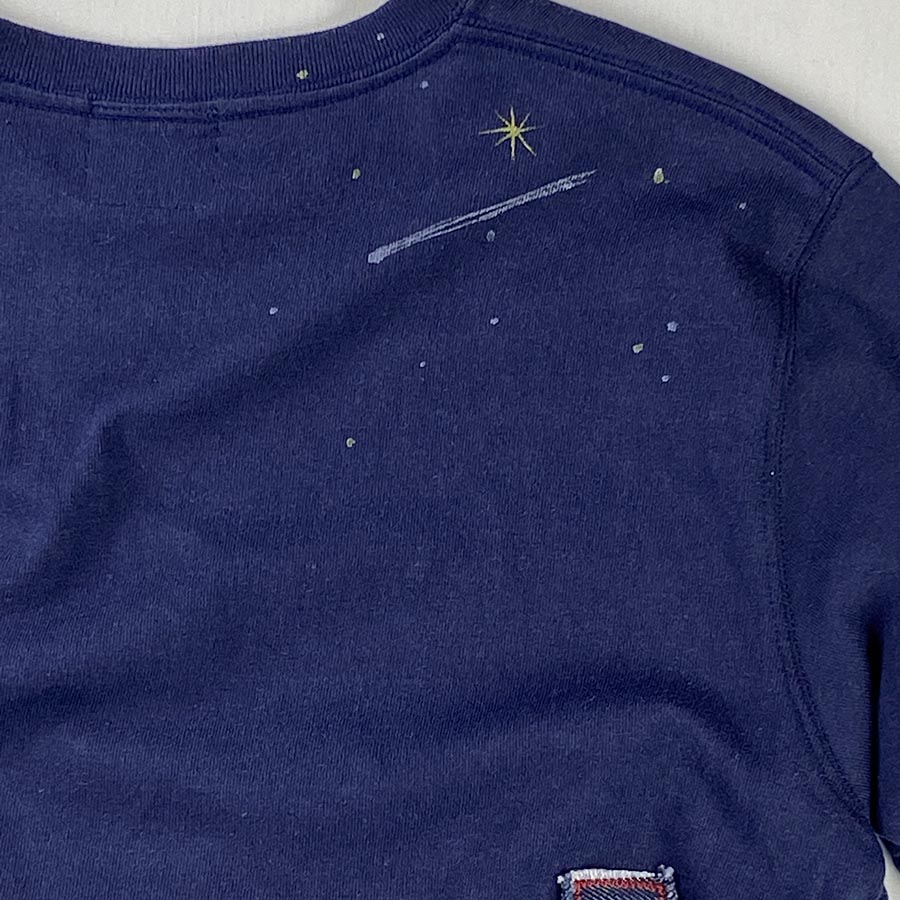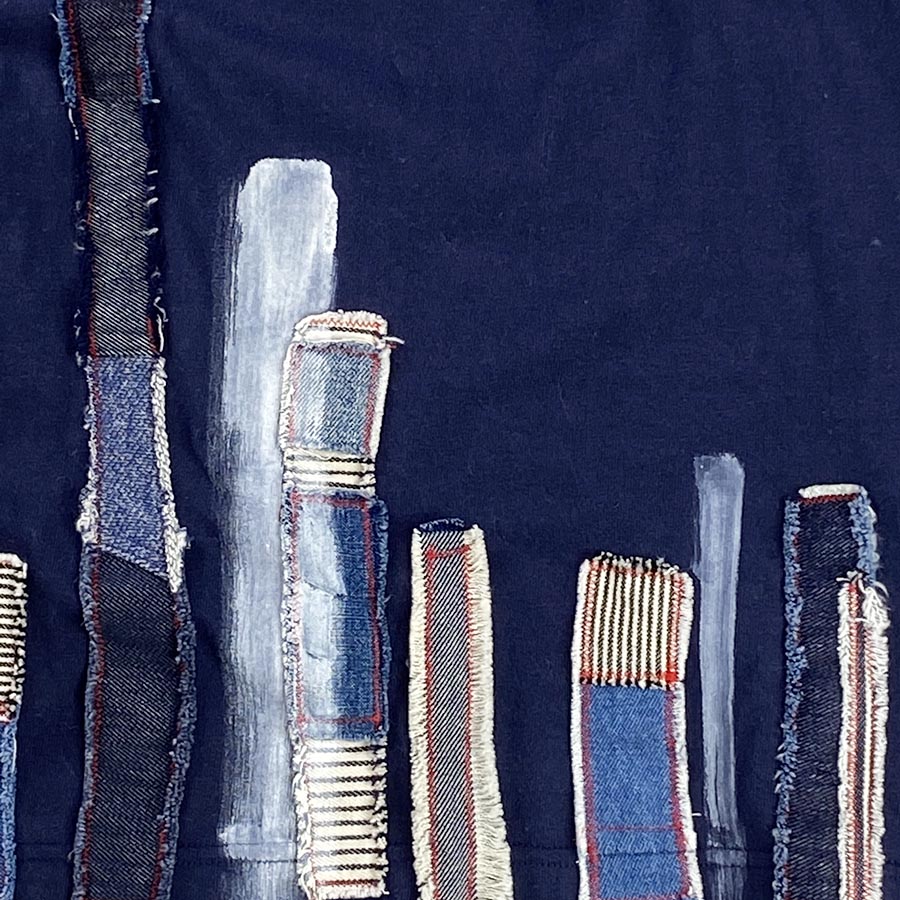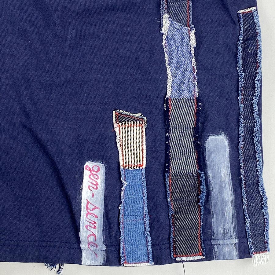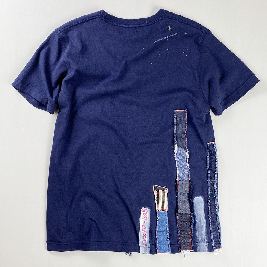 厚地で丈夫なスタンダードなTシャツにデニム地やヒッコリーなどリメイクしています。