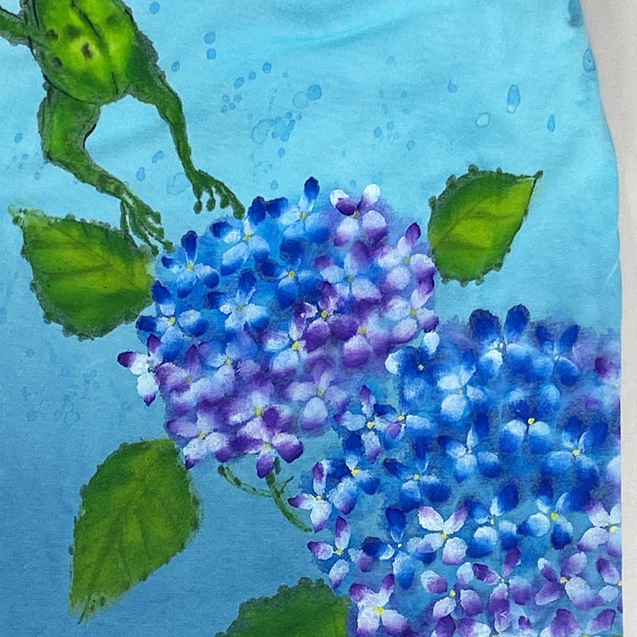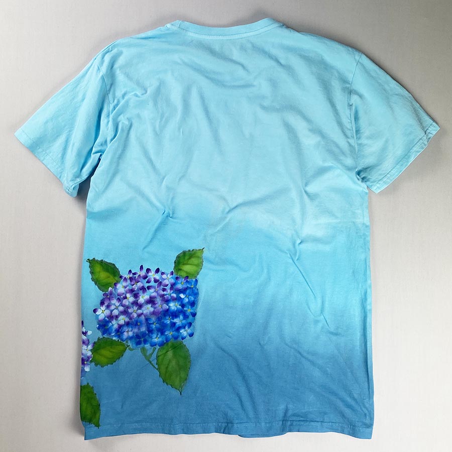 そのTシャツに瑞々しい紫陽花が咲いています。