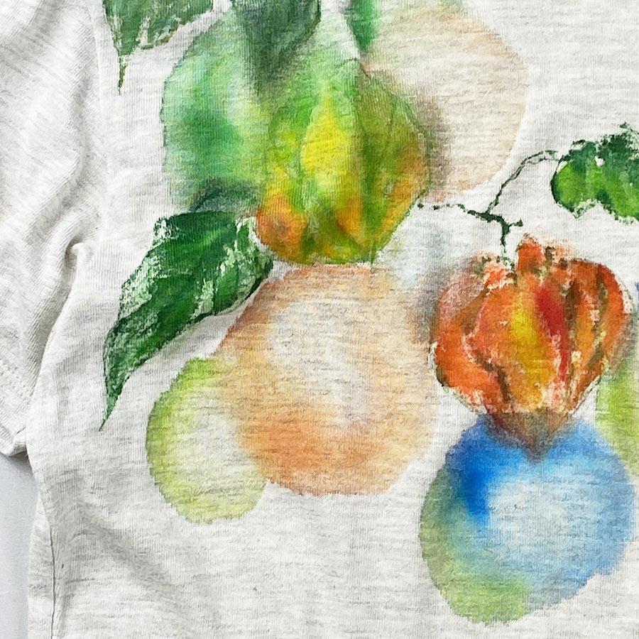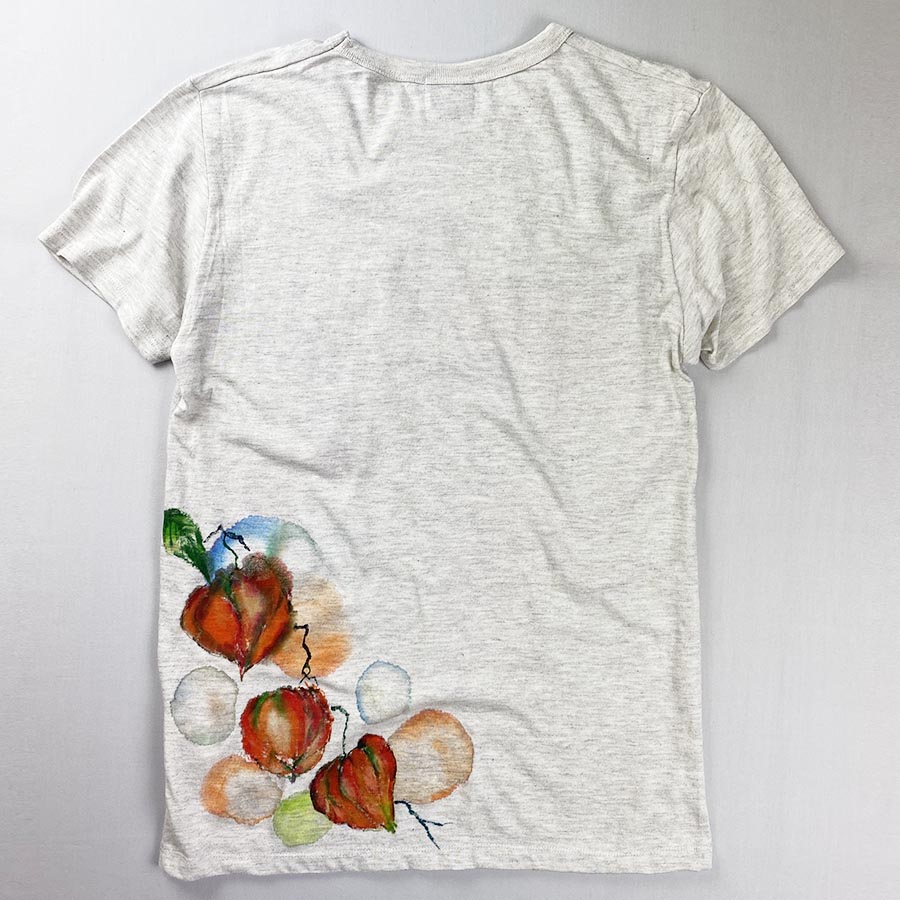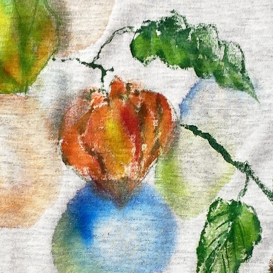 お盆の季節に先祖様の霊が迷うことなく帰ってこられるように、導く灯の象徴として供えられていたことから、縁起物とされる鬼灯(ほおずき)。提灯の光が泡玉の様にほんのり浮かぶ、妖艶な景色を表現しました。