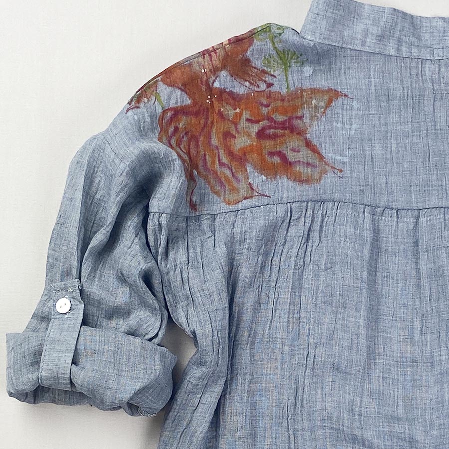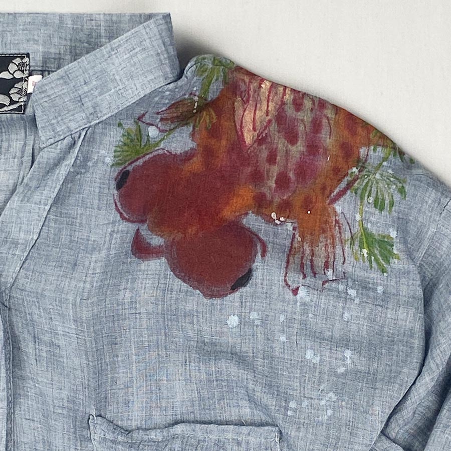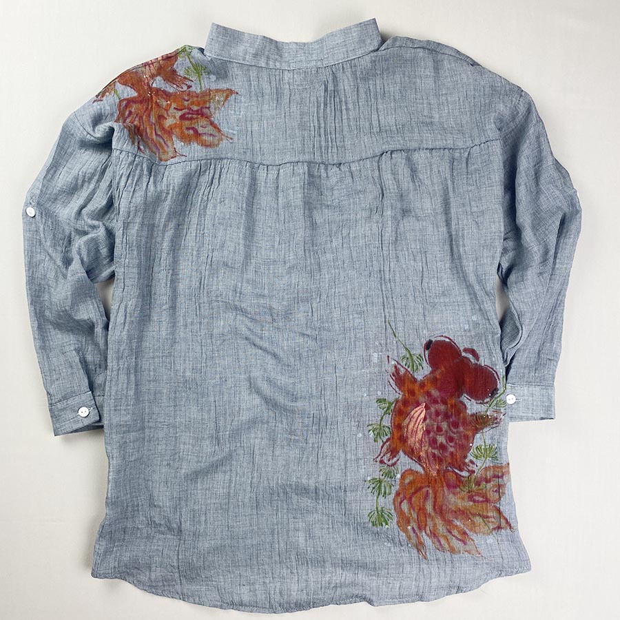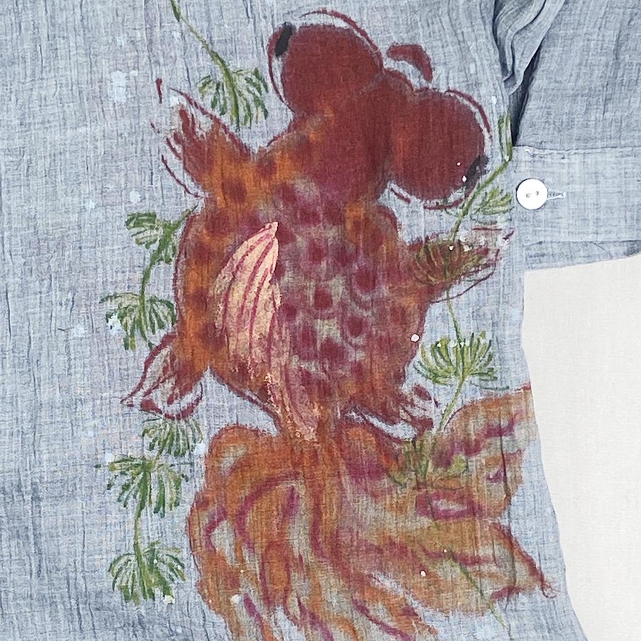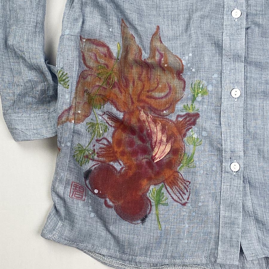 そのシャツに描いた金魚は碧でお馴染みの愛らしい金魚。可愛くて万能な一枚です。