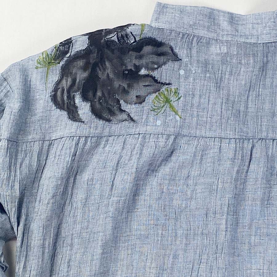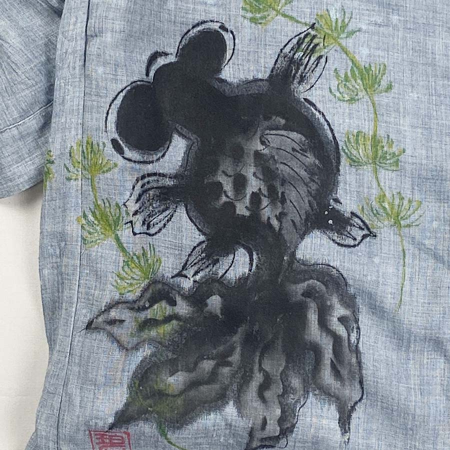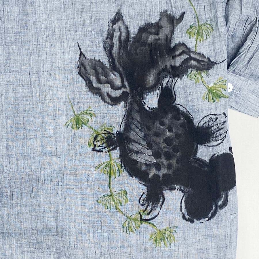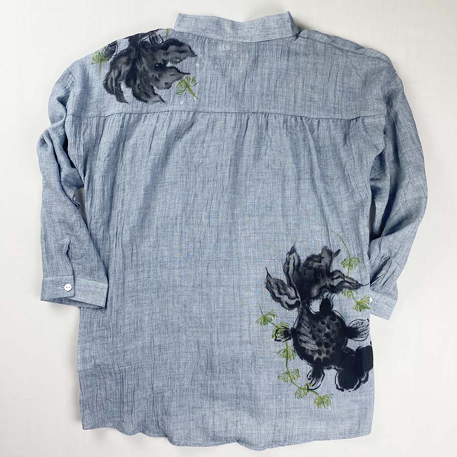 そのシャツに描いた金魚は碧でお馴染みの愛らしい金魚。可愛くて万能な一枚です。