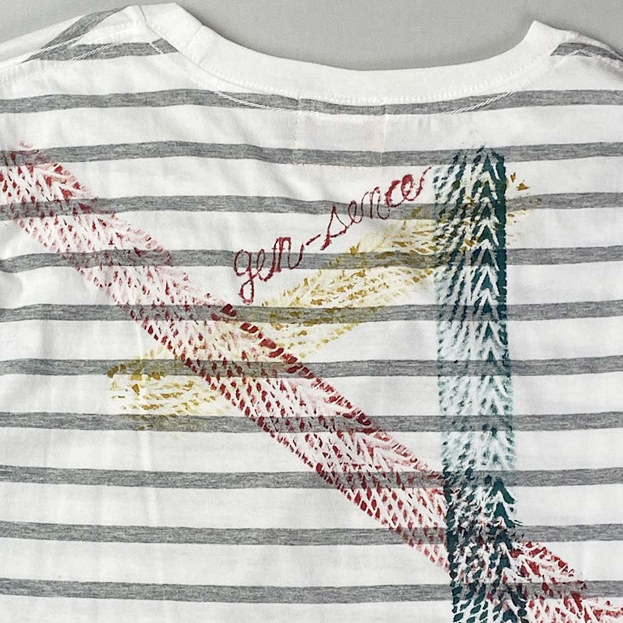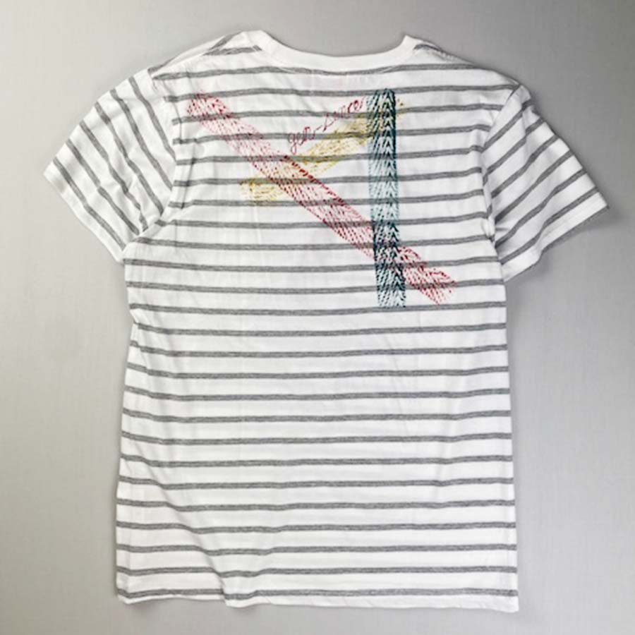 首元リブ部分が白でとても爽やかな印象の細いボーダーTシャツ。