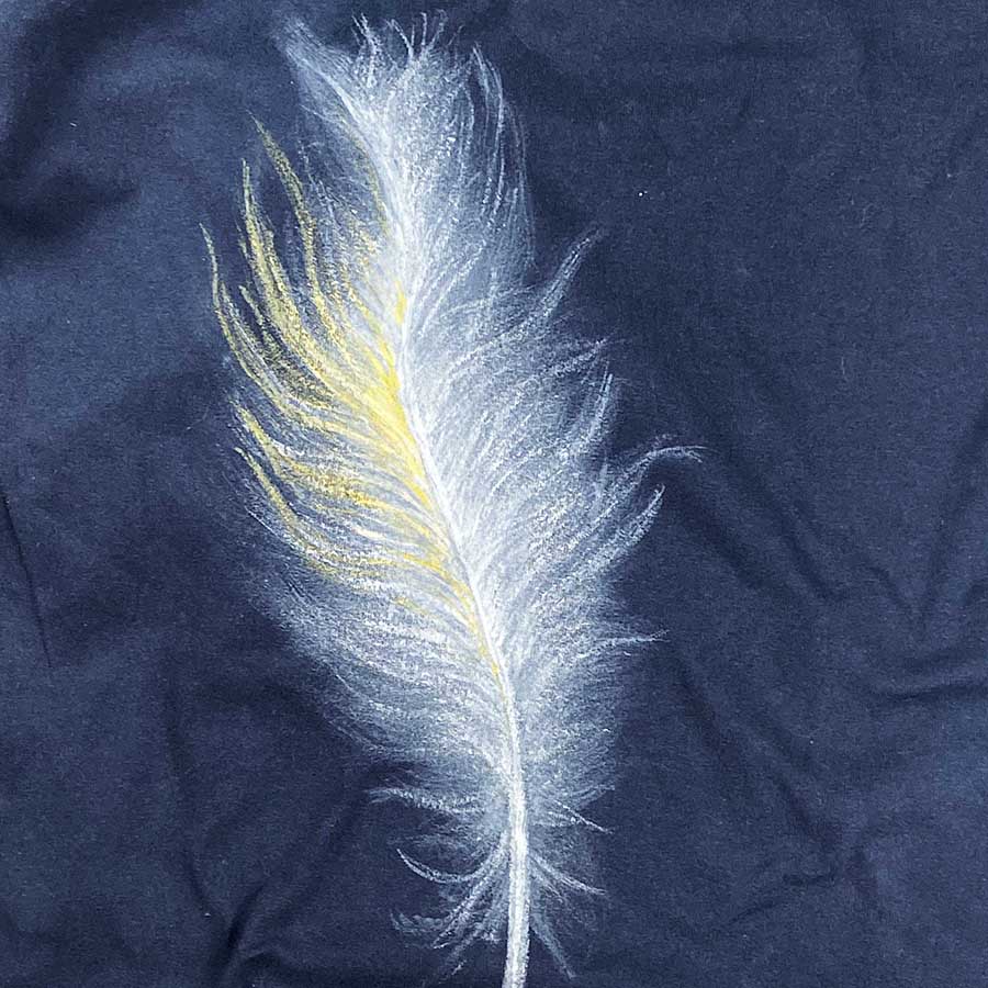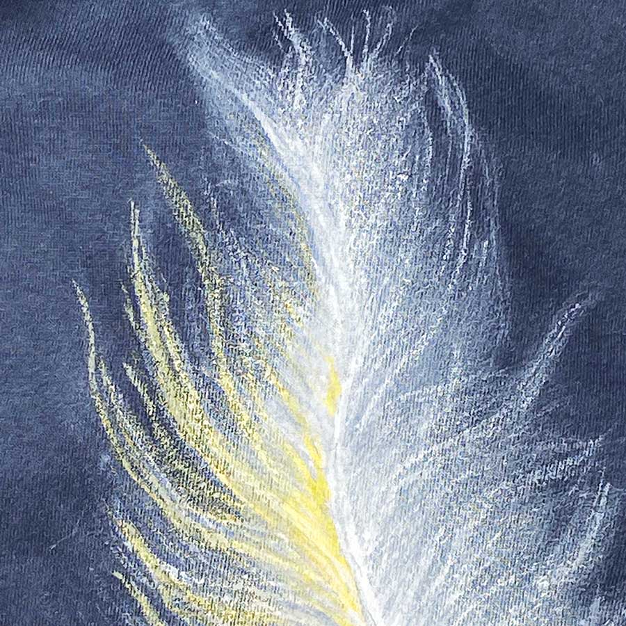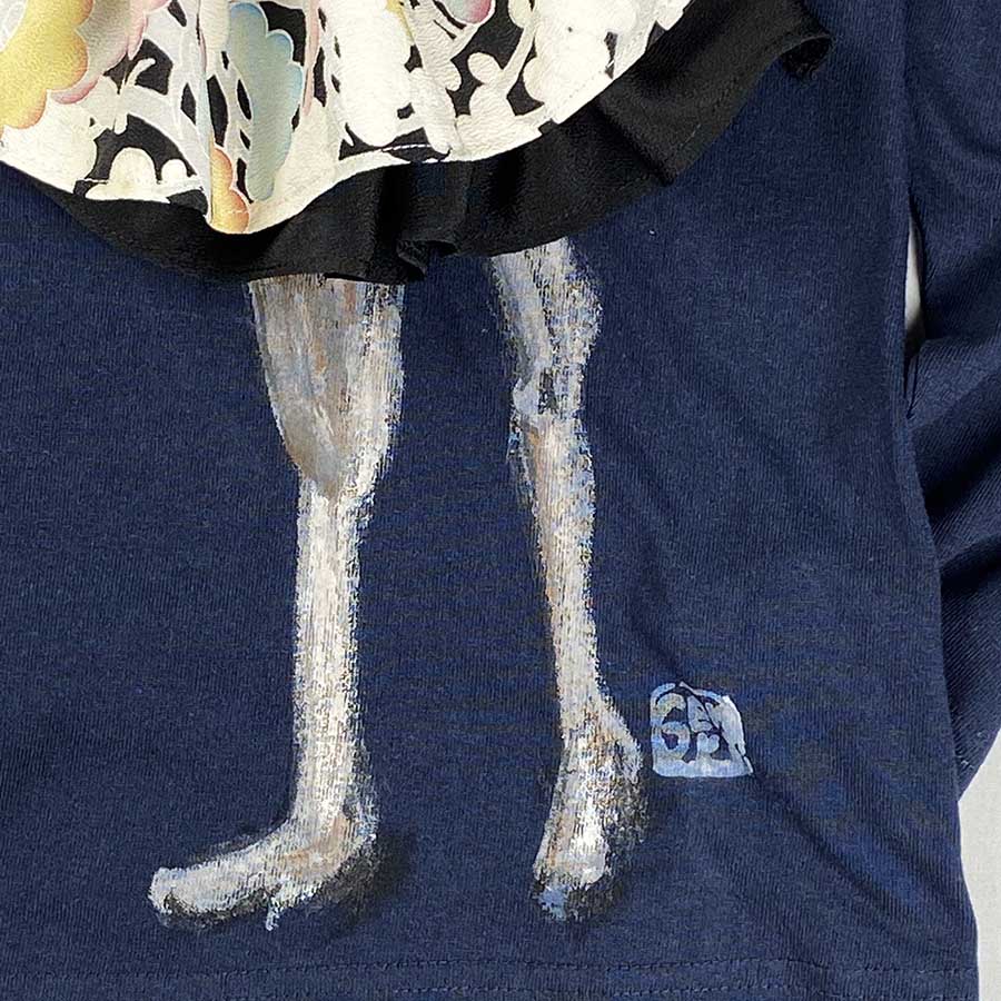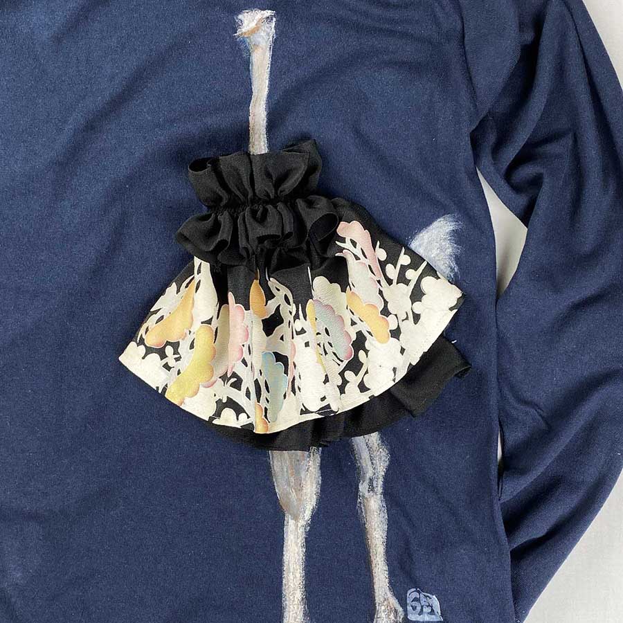 フィナーレを迎えたダチョウの麗しい姿を着物のパッチワークと手描きで表現しました。