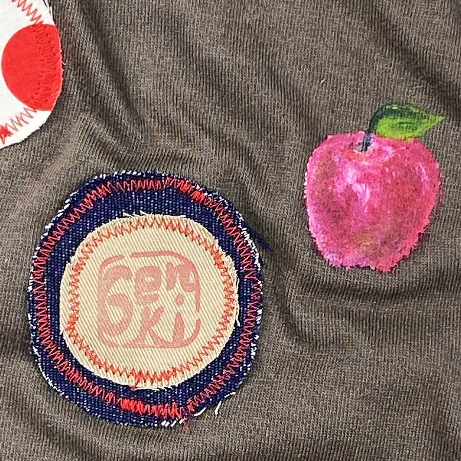 動物園でも人気者のカバの愛らしい所をTシャツに表現しました。大好きなリンゴが水玉と一緒に降ってきたので、カバが大きなお口を開けています。