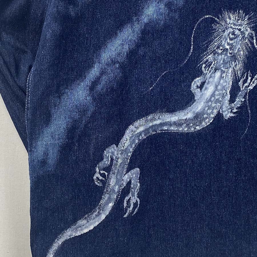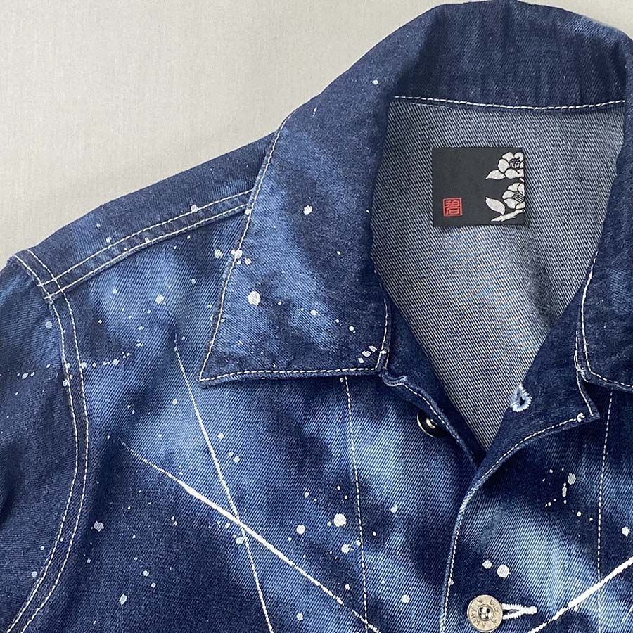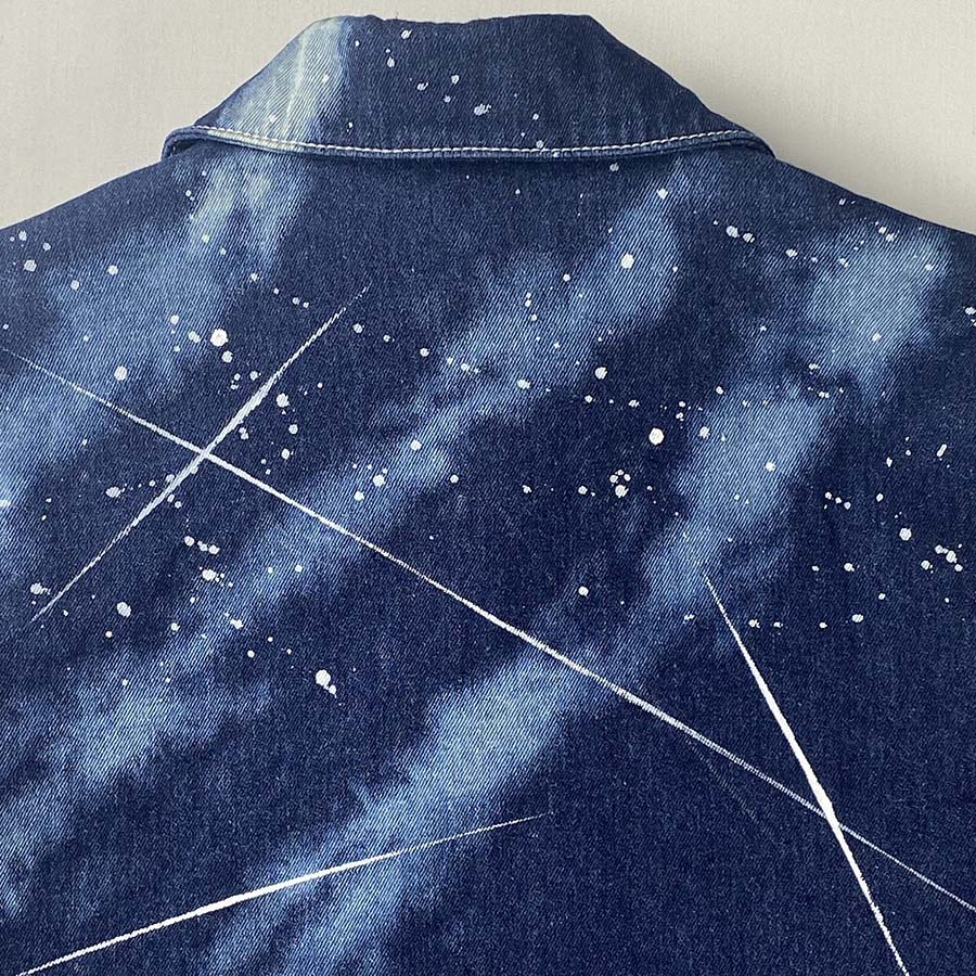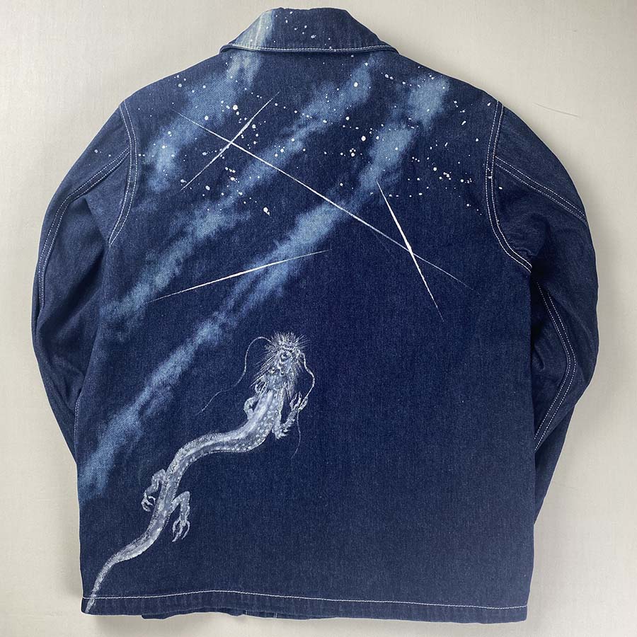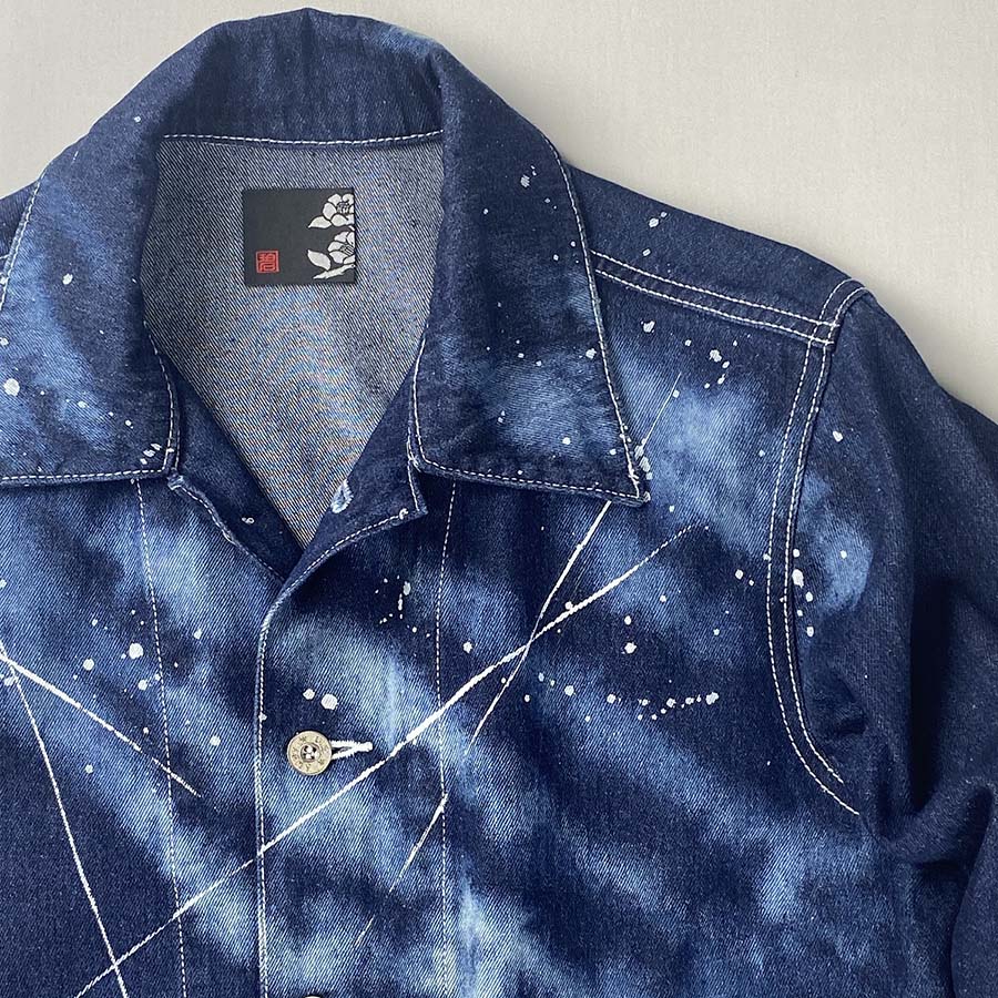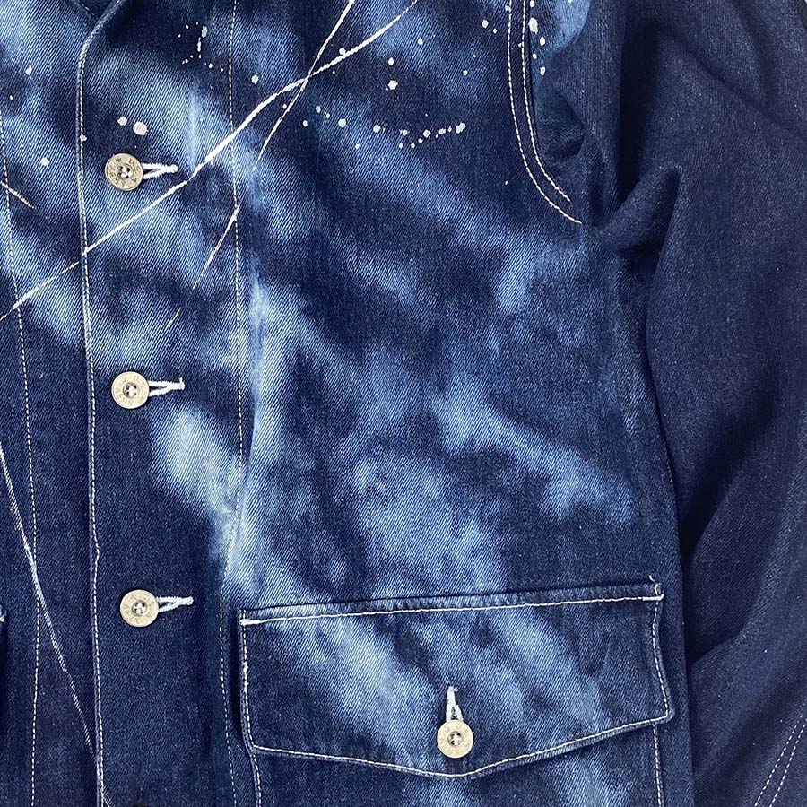 とても丈夫なデニムワークジャケット。一枚あればとても重宝します。そのジャケットを大胆に抜染加工を施しました。煙の様な、空に浮かぶ雲の様な…