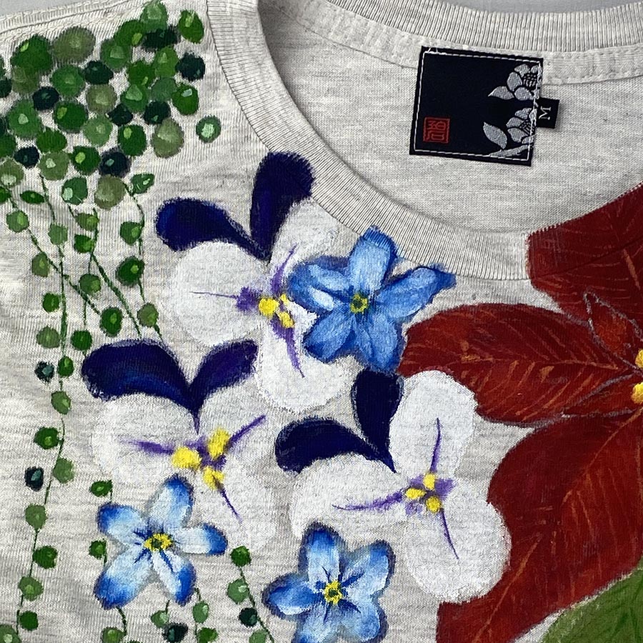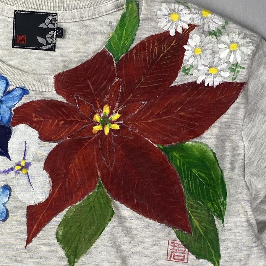 首元に華やかな秋冬のお花を描きました。