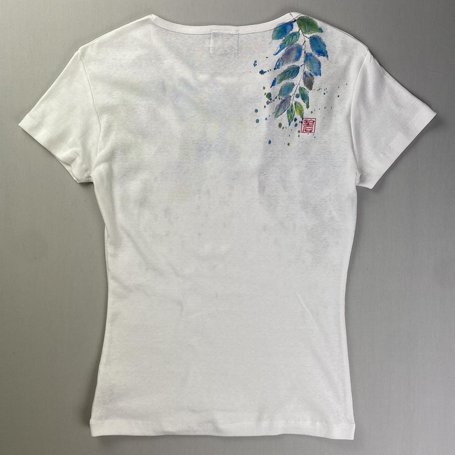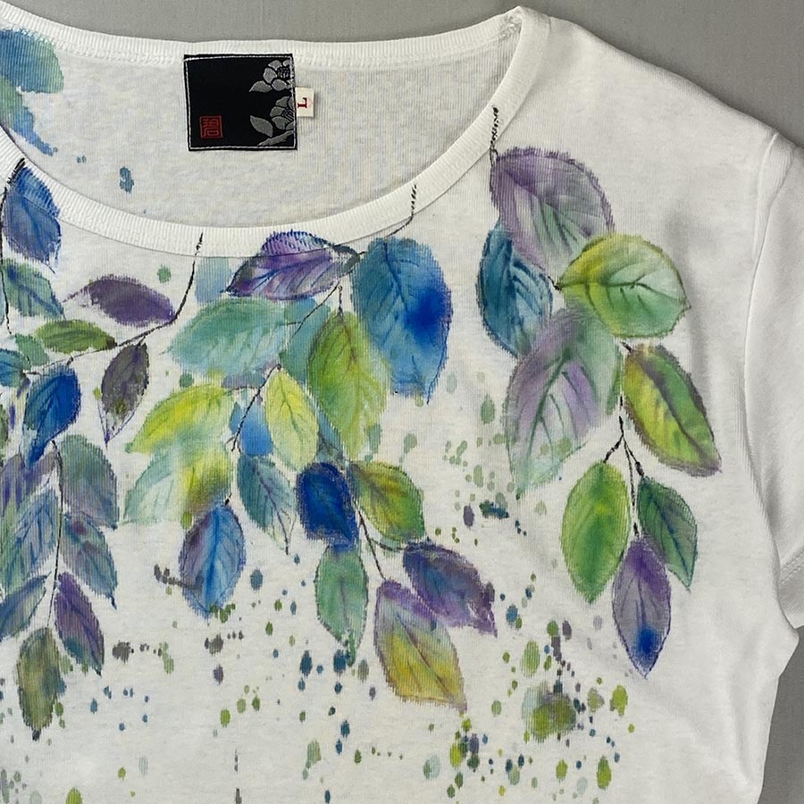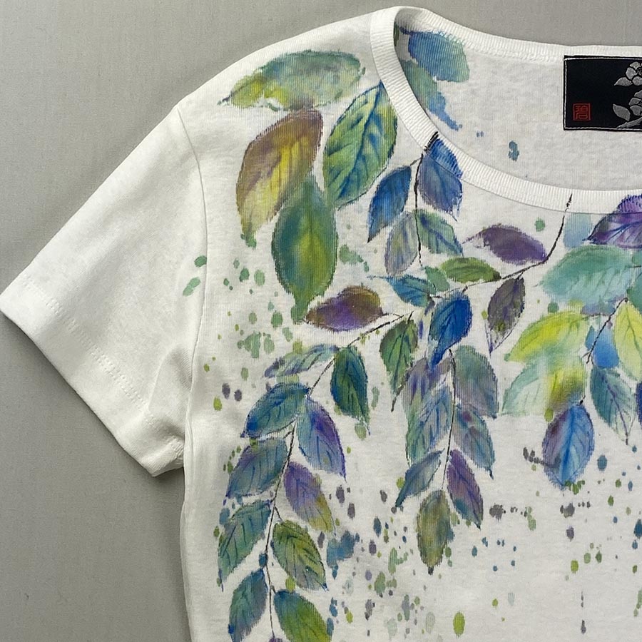 胸元に味わい深い色味でみずみずしい葉を描きました。
