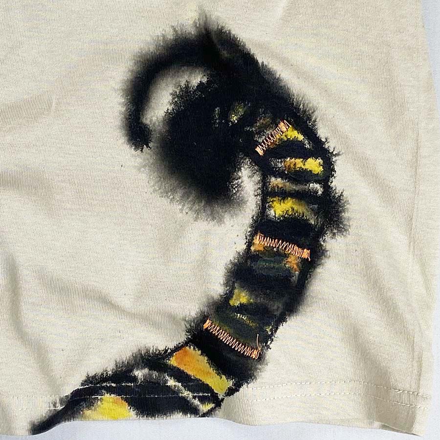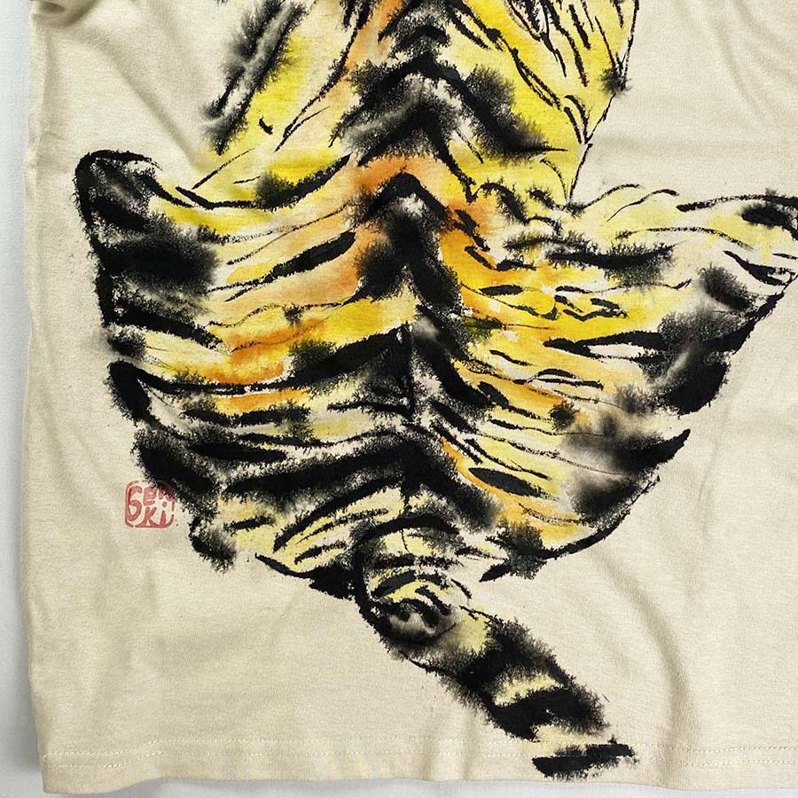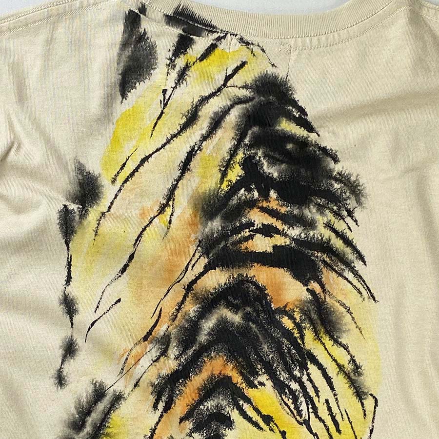 柔らかい肌触りのリングスパン糸を使用したTシャツに猛獣の虎の背中を手描きしました。