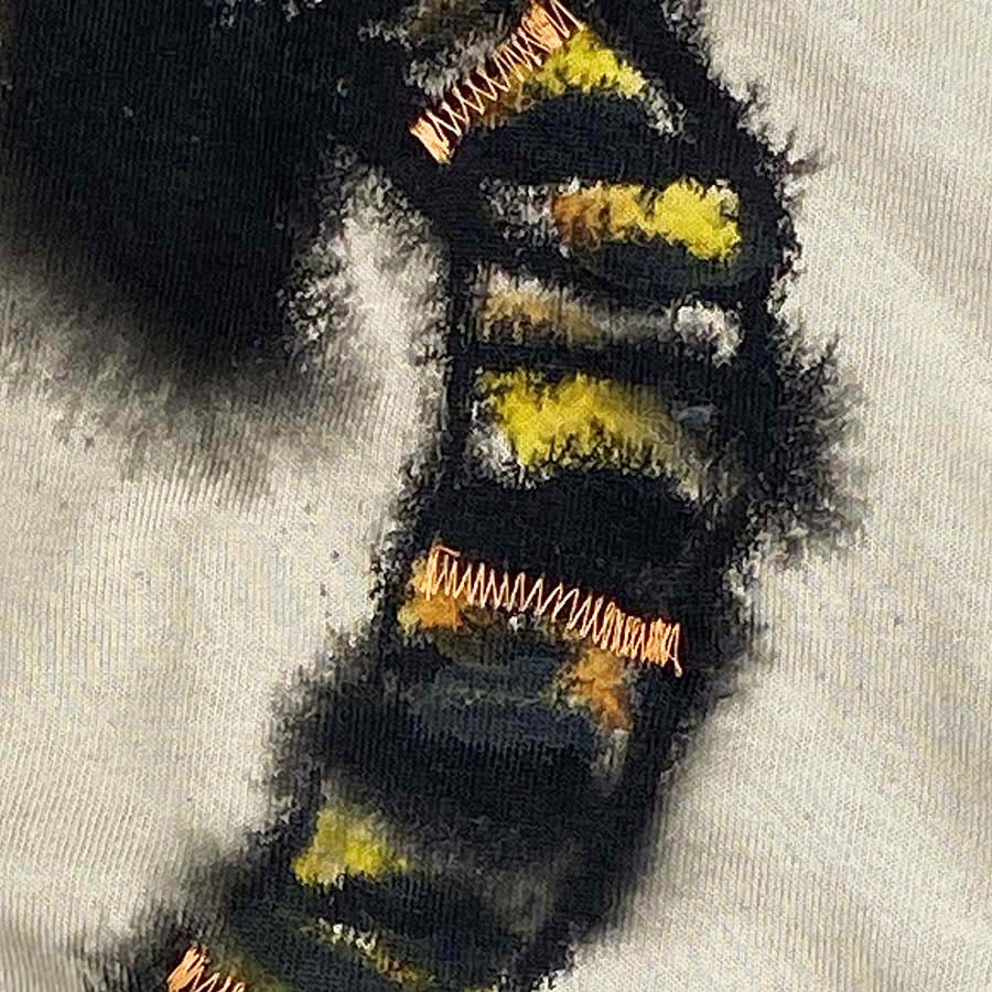 Tシャツの虎の背中はそんな強くて勇ましい王者の空気を表現しました。尻尾にはステッチでアクセントを付けています。