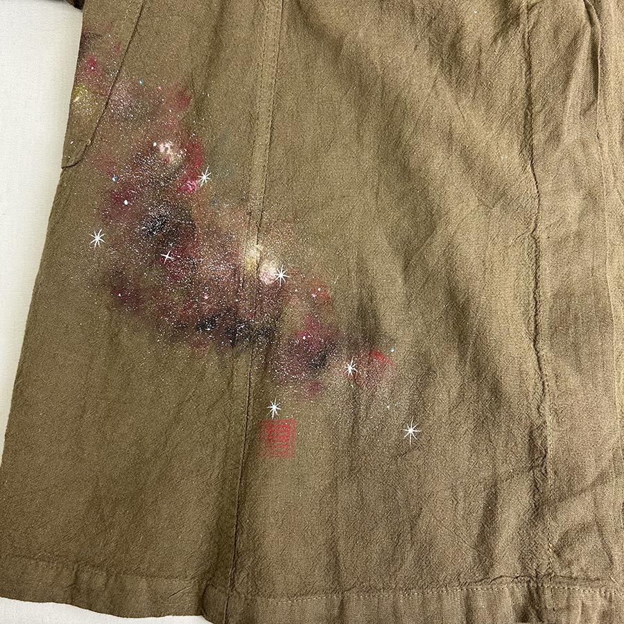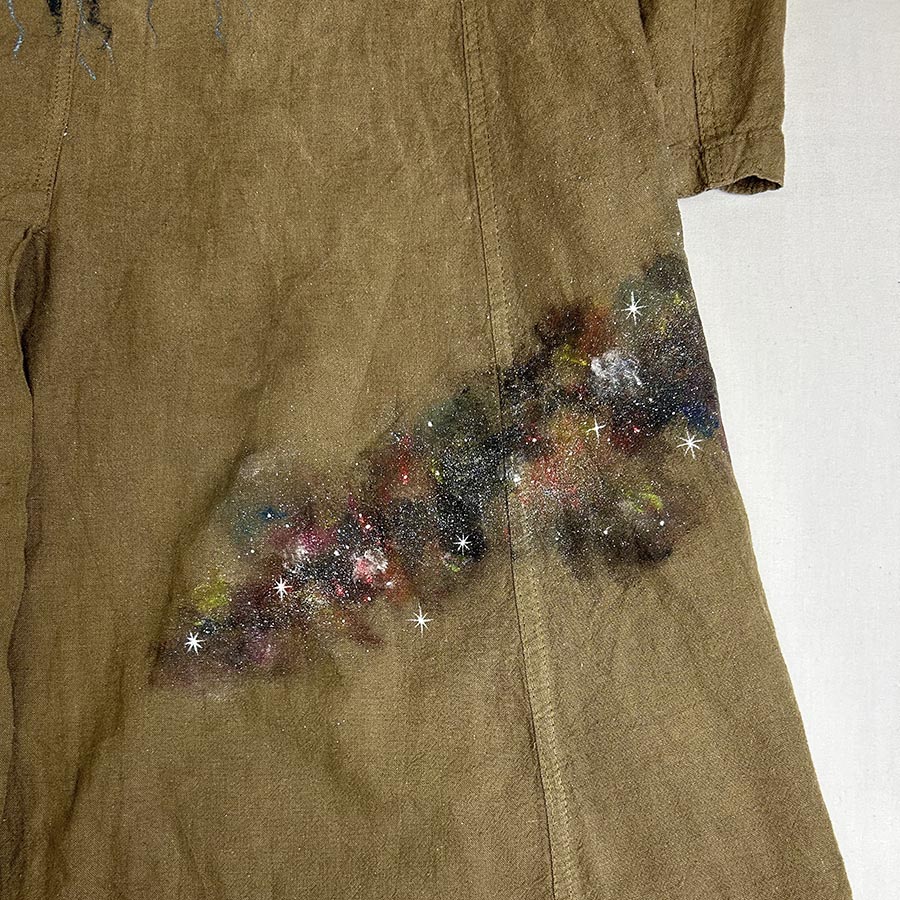 そのコートにキラキラ輝く美しく神秘的な銀河を散りばめました。