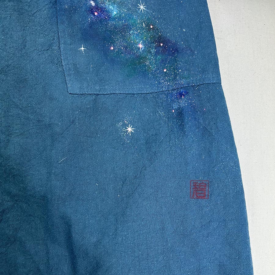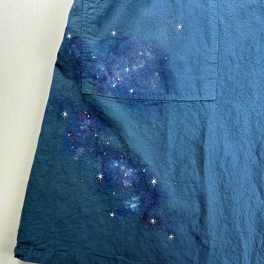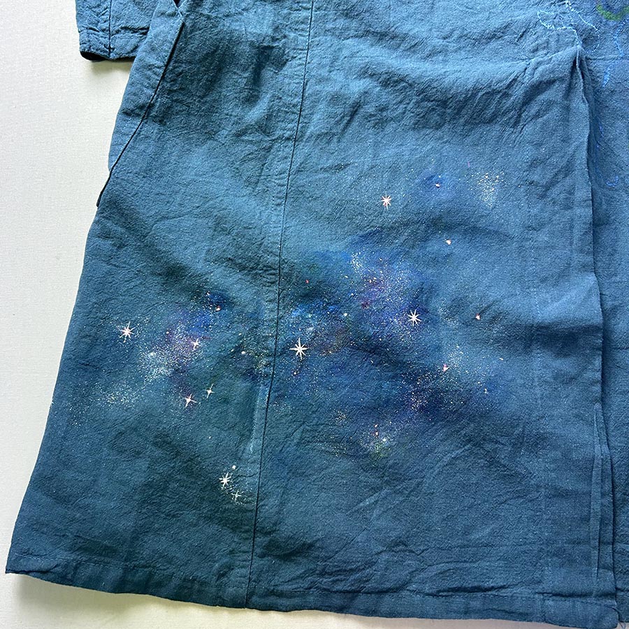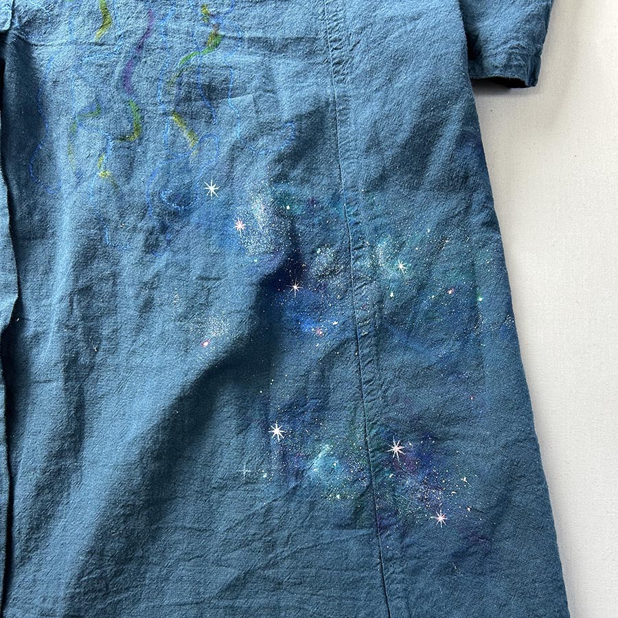 そのコートにキラキラ輝く美しく神秘的な銀河を散りばめました。
