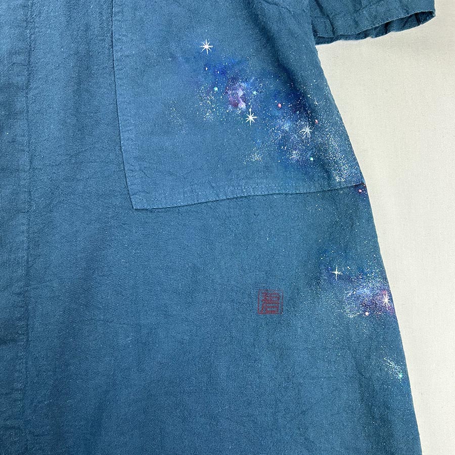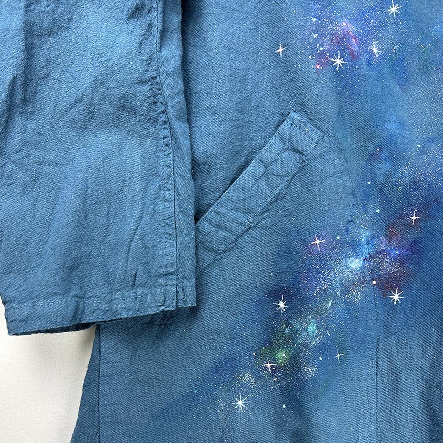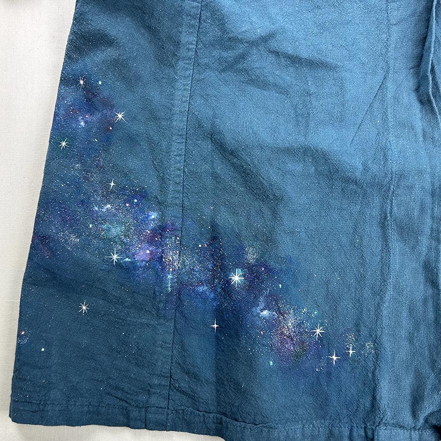 そのコートにキラキラ輝く美しく神秘的な銀河を散りばめました。