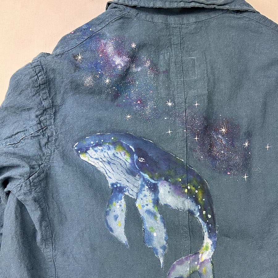 そこに宇宙を優雅に泳ぐ鯨を表現しました。