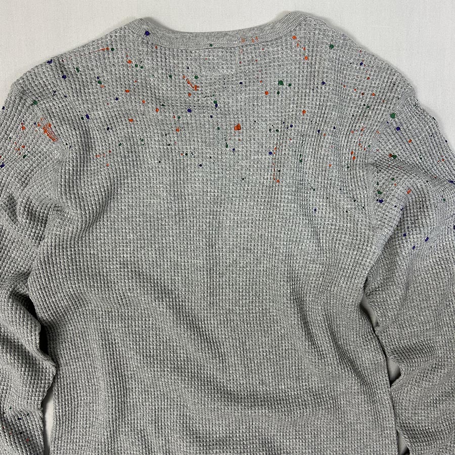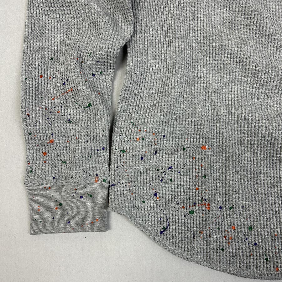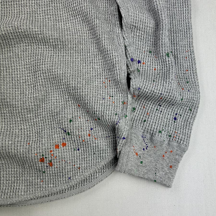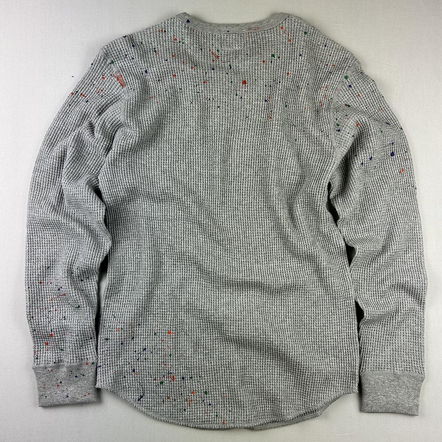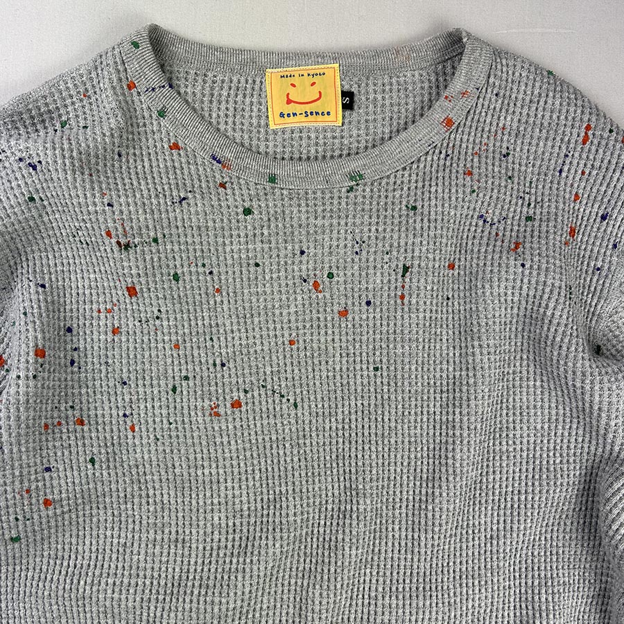 表面の凸凹により吸収性に優れたワッフル素材の長袖Tシャツ。