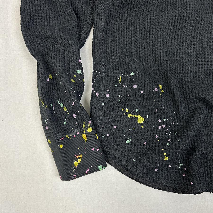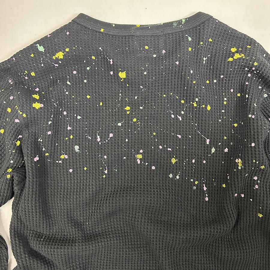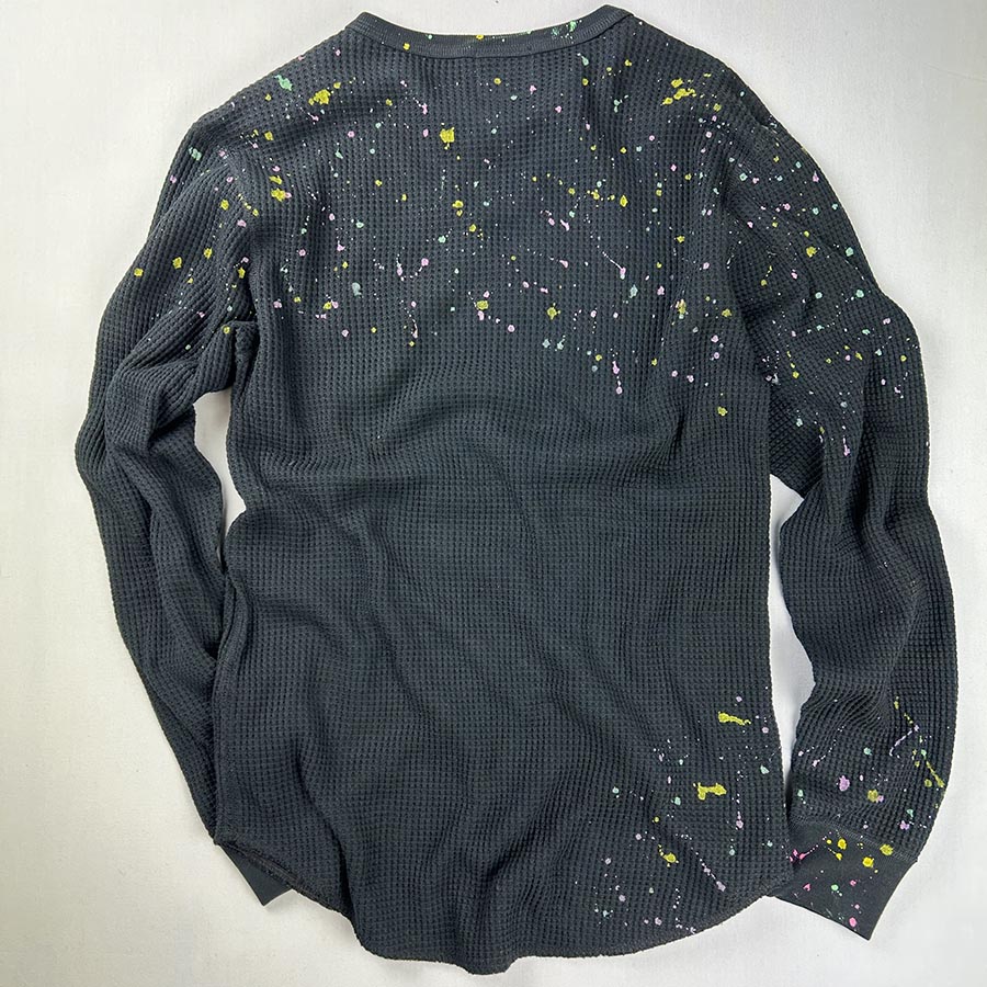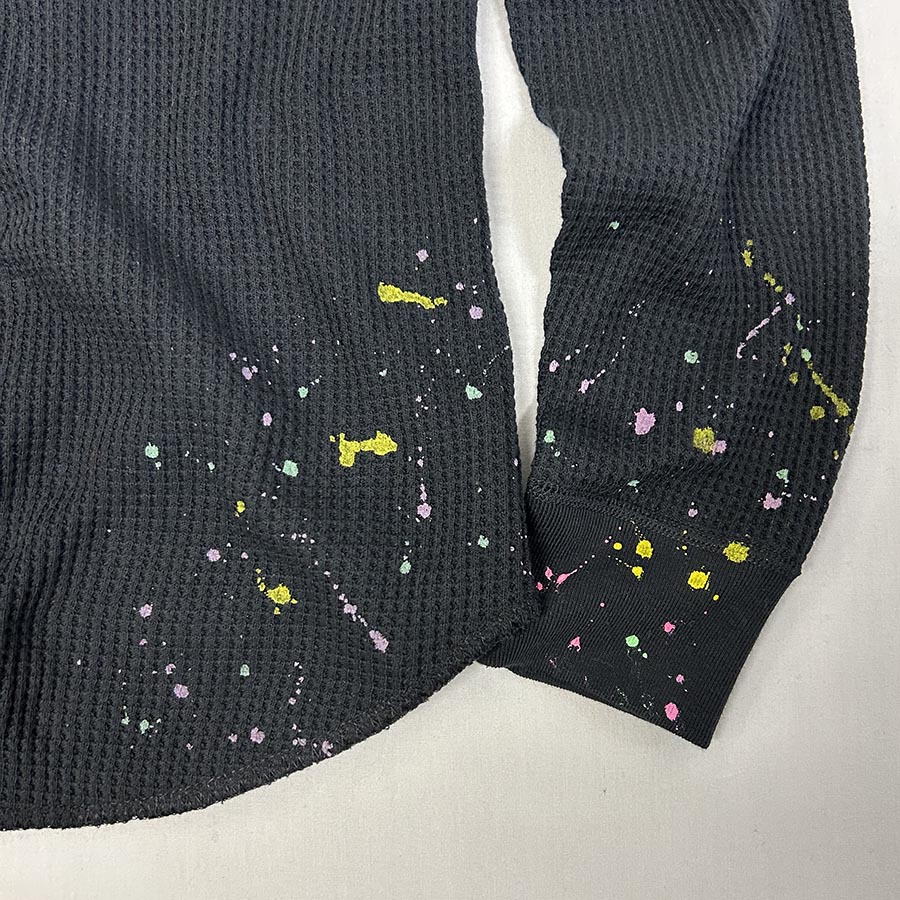 表面の凸凹により吸収性に優れたワッフル素材の長袖Tシャツ。