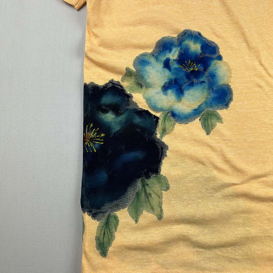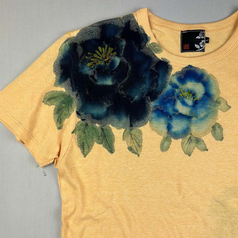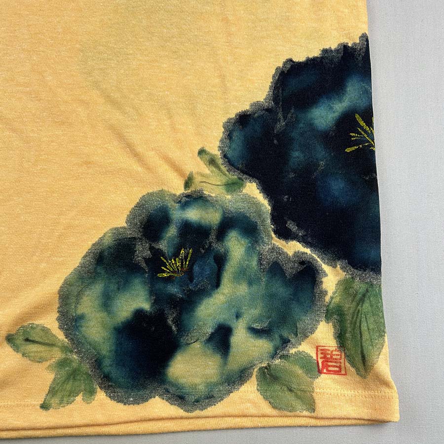黄色のTシャツには、昔の襖絵を思わせる色味に仕上げました。