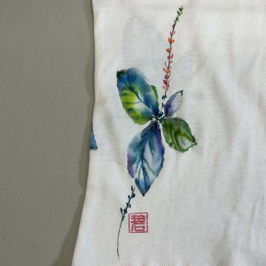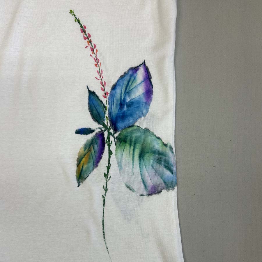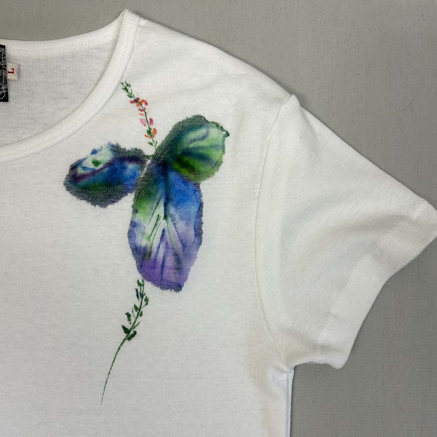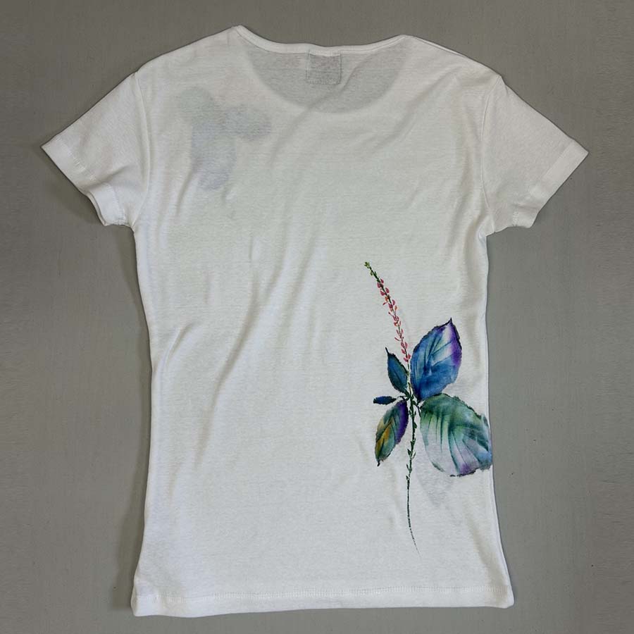 伸縮性のある、しなやかなフライスTシャツに描きました。