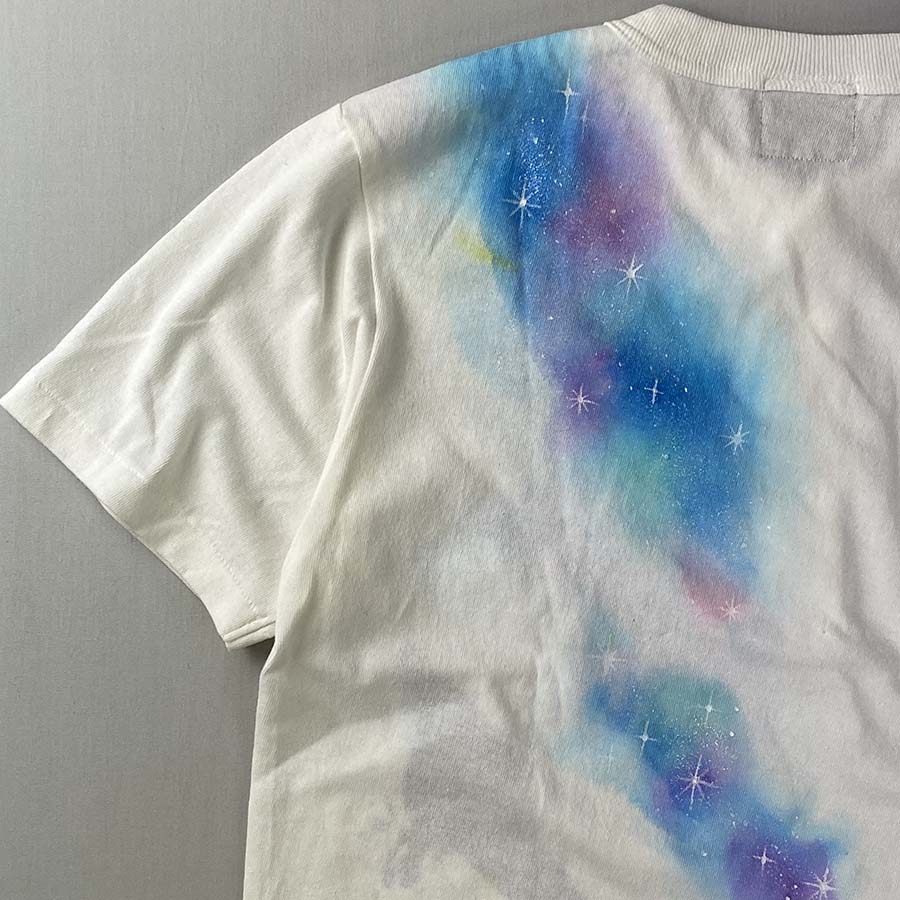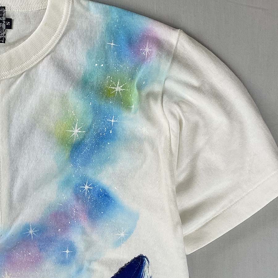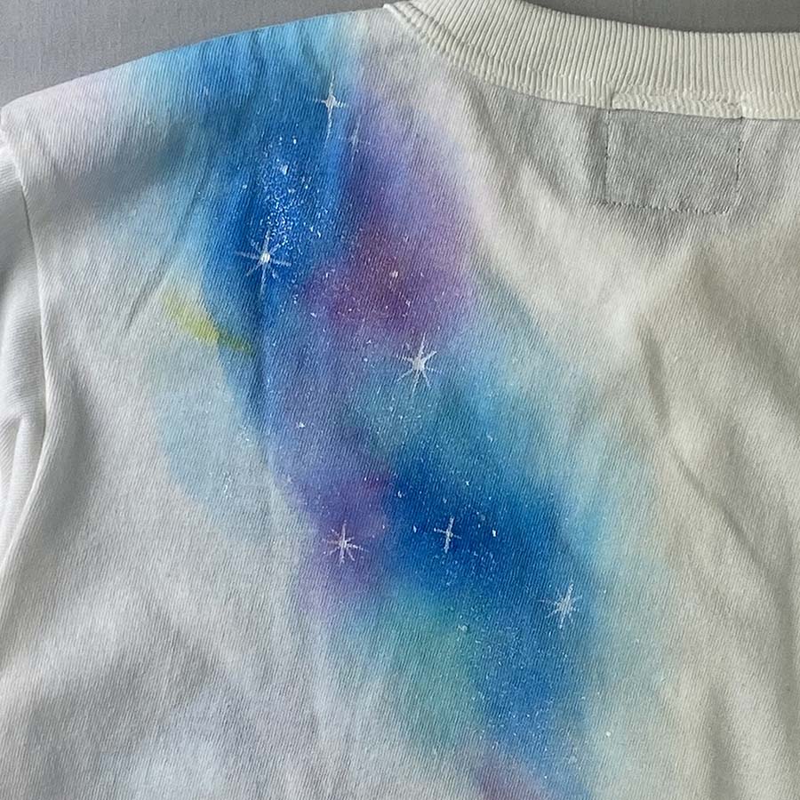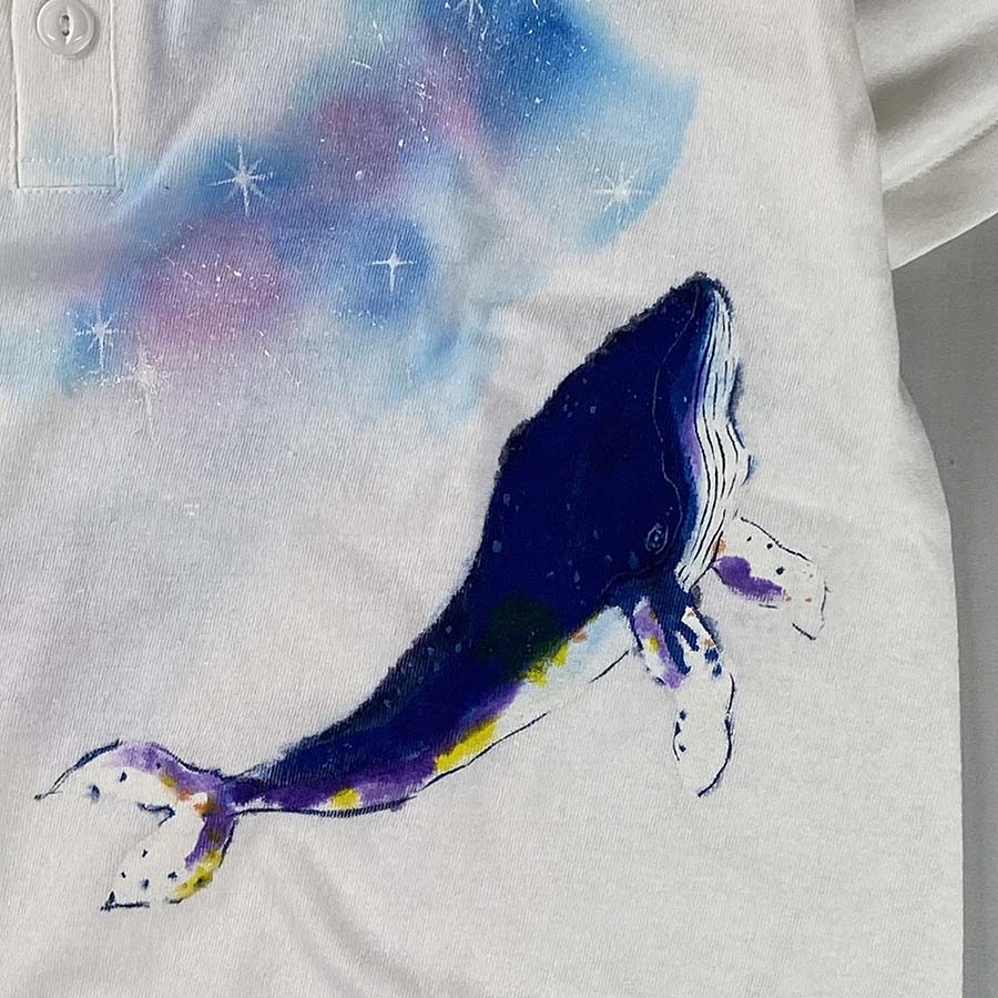 キラキラ輝く美しい神秘的な銀河の中を優雅に泳ぐ鯨を描きました。