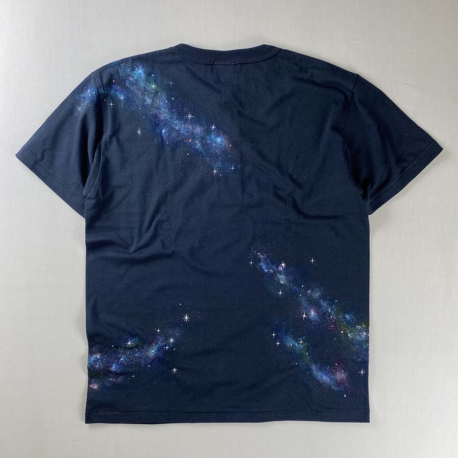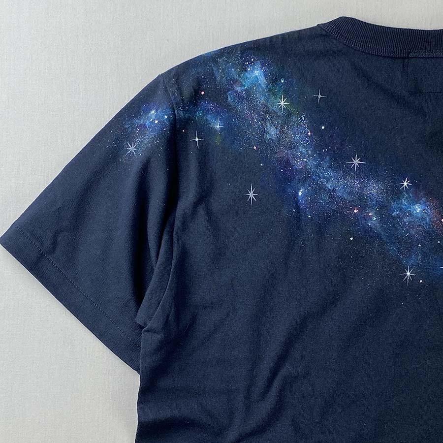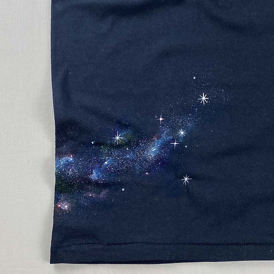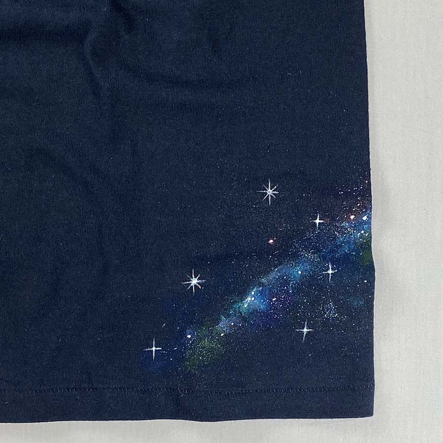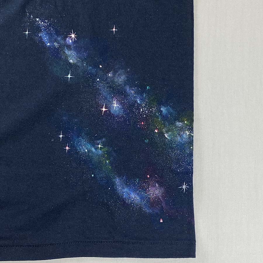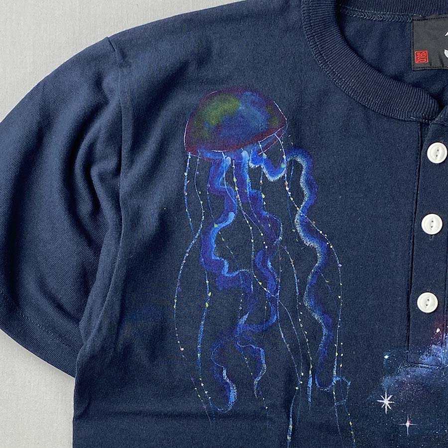 キラキラ輝く美しい神秘的な銀河の中を優雅に泳ぐ海月を描きました。深海を泳ぐ海月が海から空へ。 神秘的な宇宙回遊です。