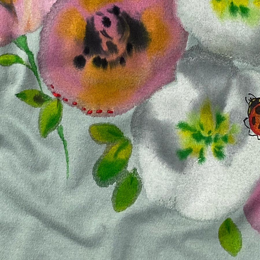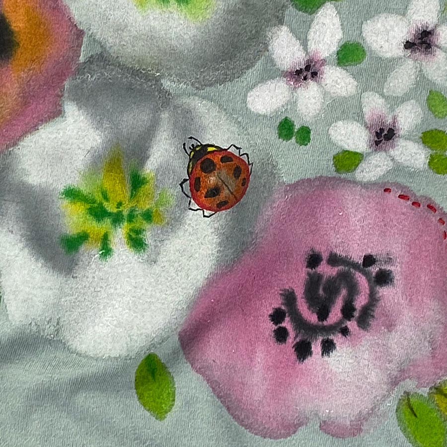 美しいく楽しい世界、御伽の国。そこに咲くお花はこんな風に愛らしいお花でしょう。思わずてんとう虫も遊びに来ました。