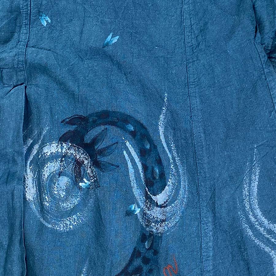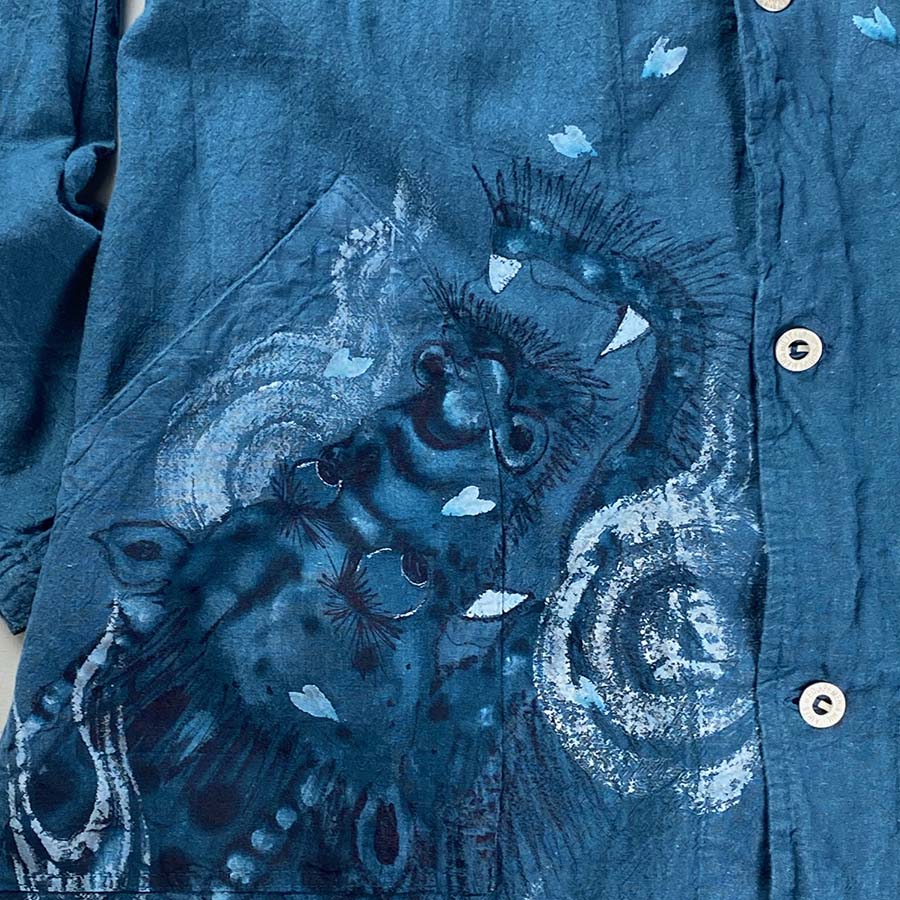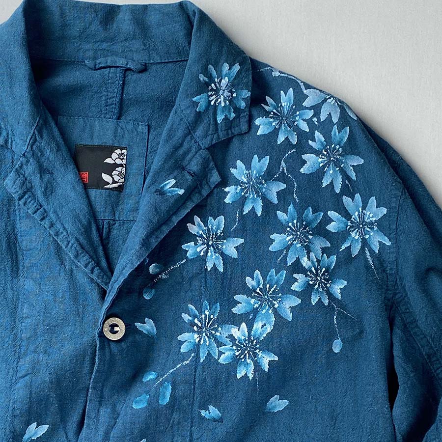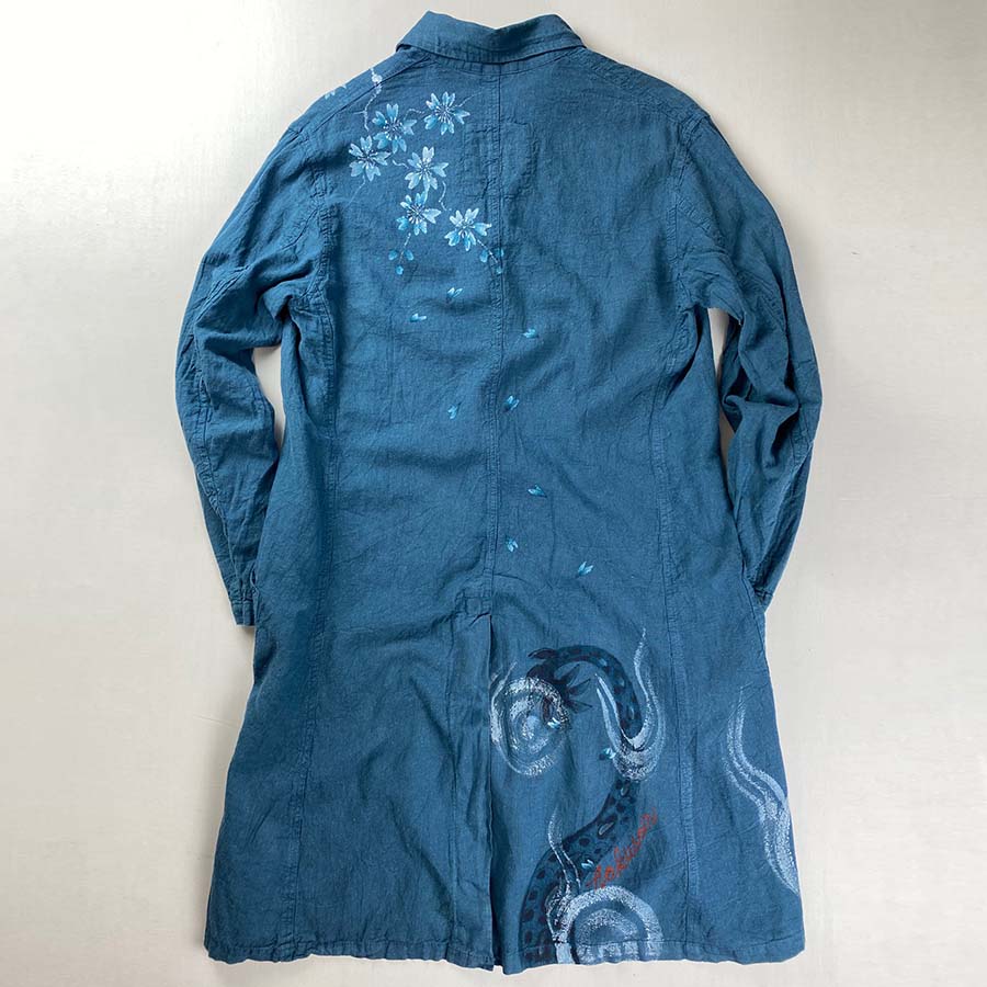 そのコートに桜と龍。龍がお花見しています。コートの青と同系色の桜が粋です。
