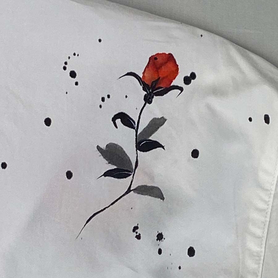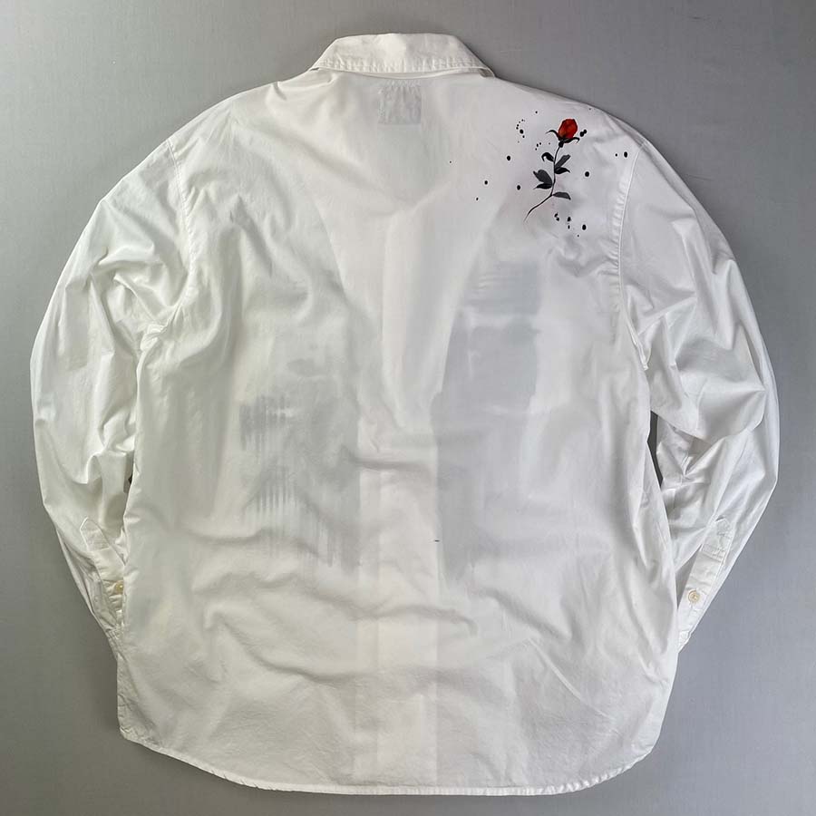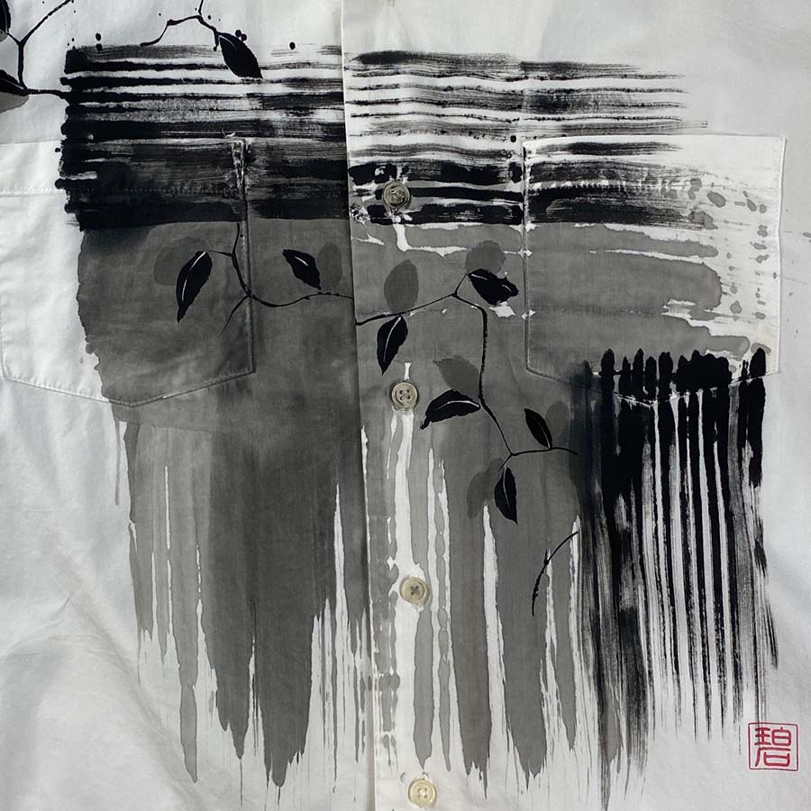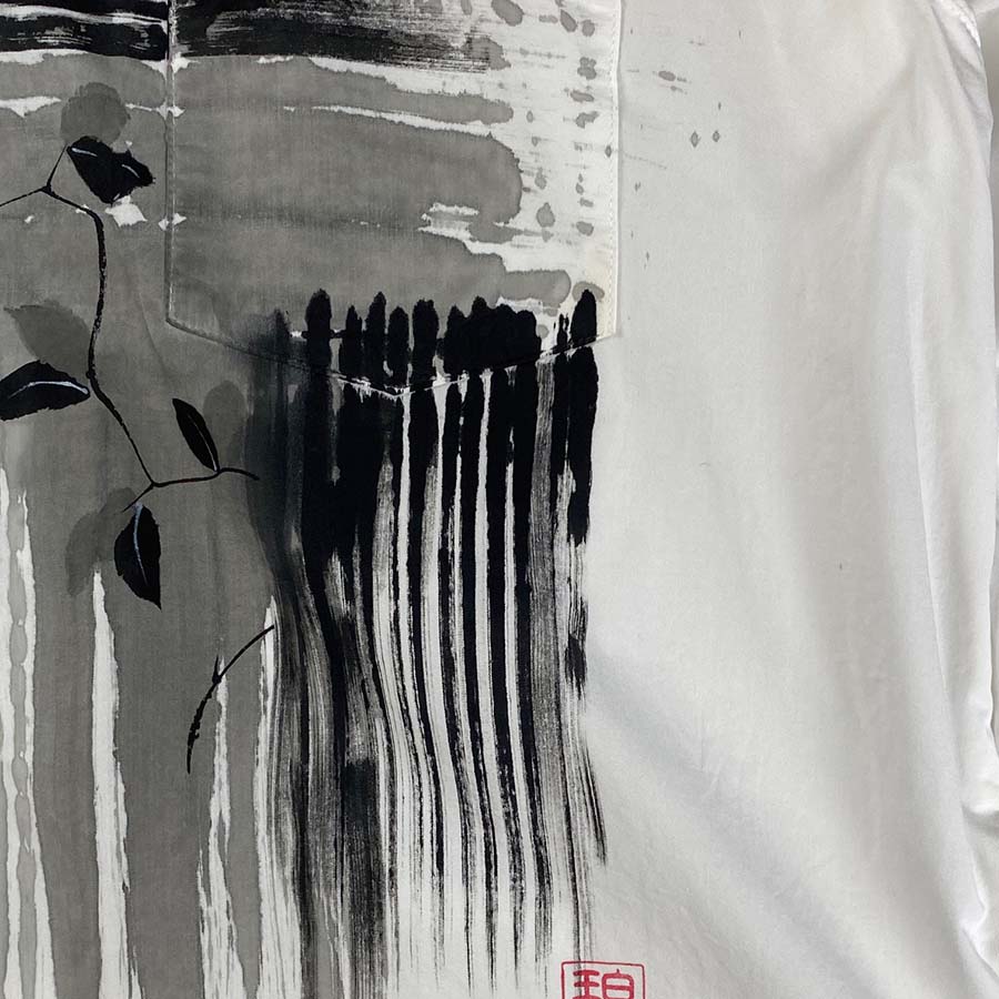白シャツの胸元に描く城壁は大胆。